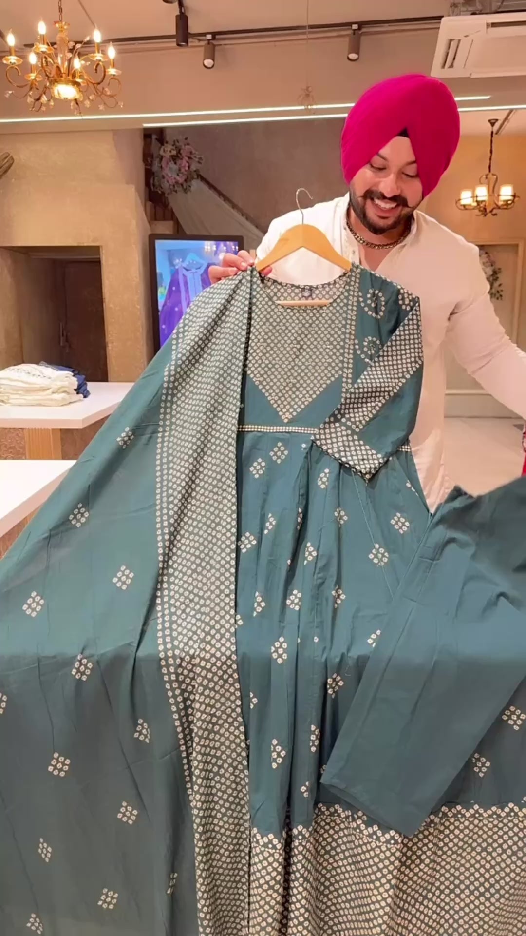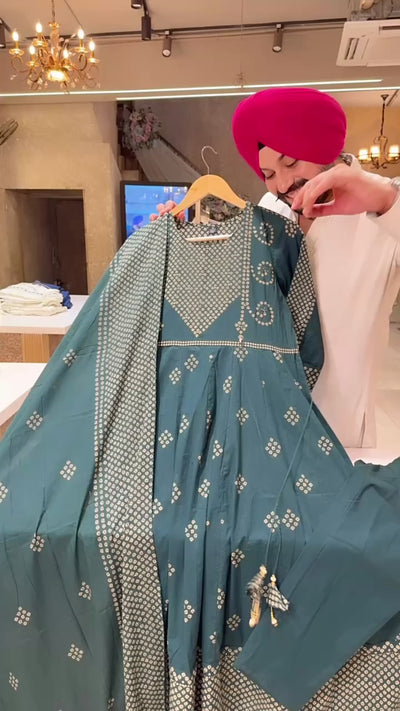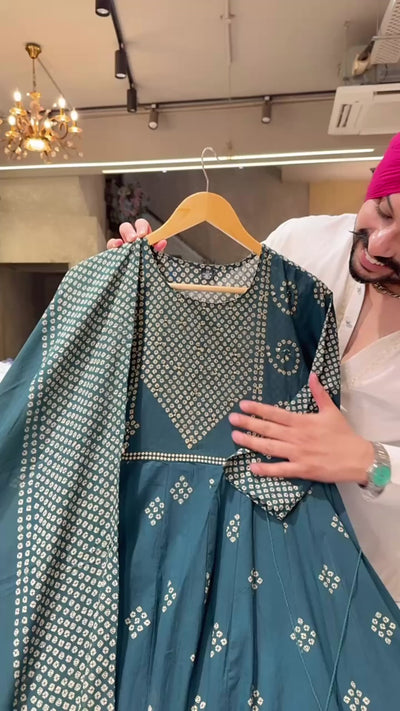 Dark RamaGreen Pure Cotton Bandhej Print Full Flair Anarkali Suit