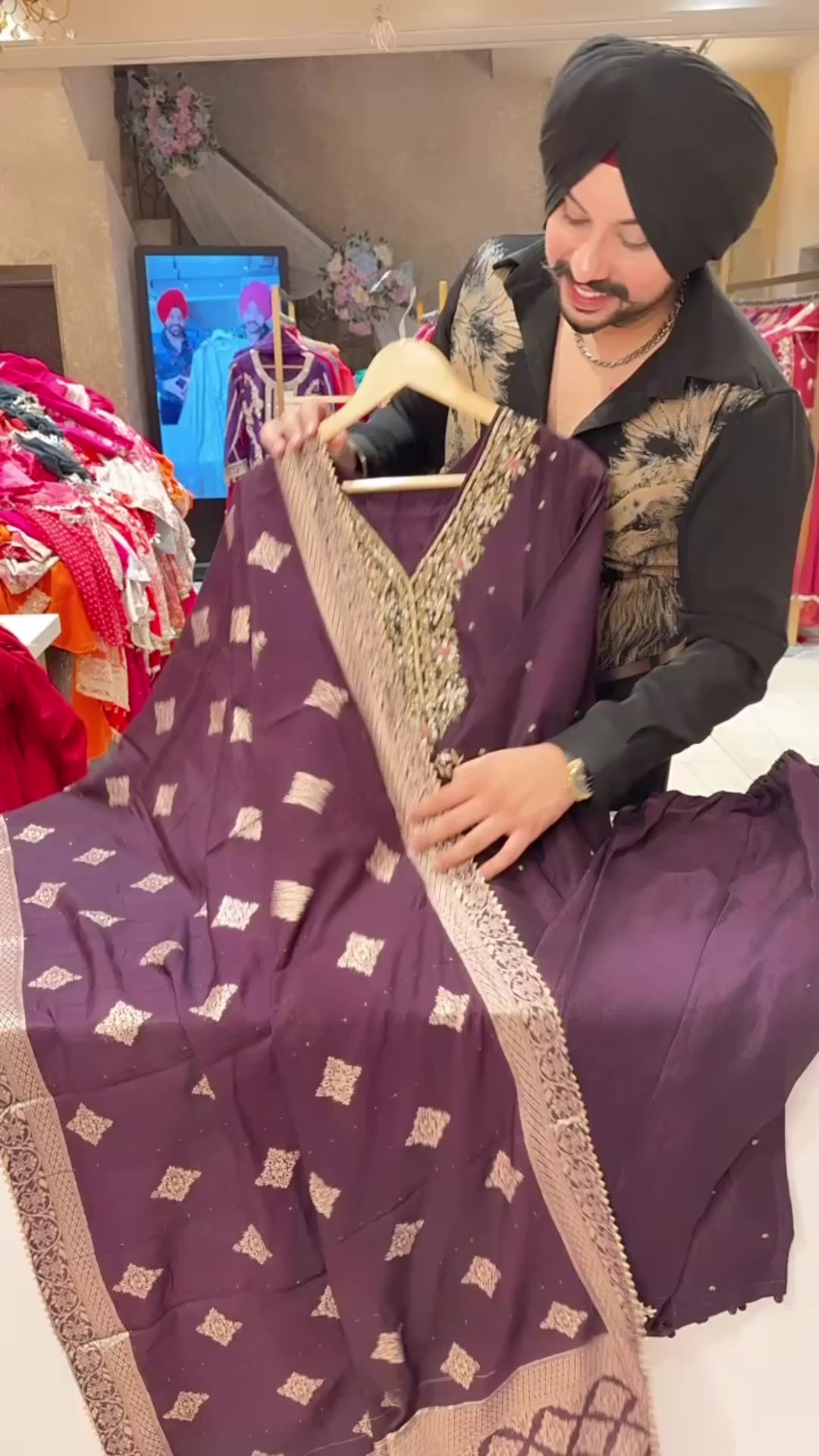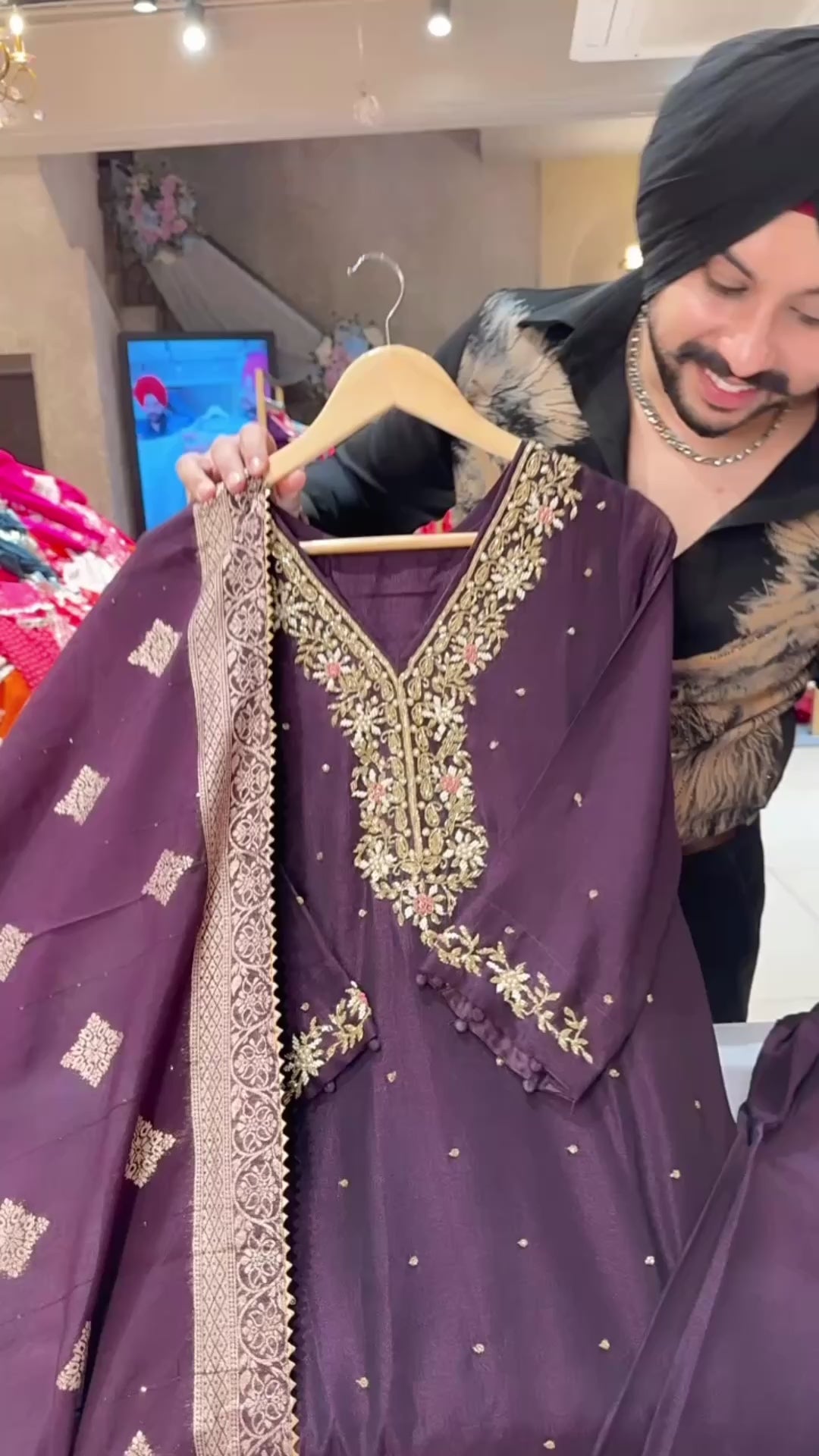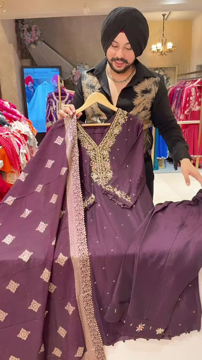 Dark Wine Chinon Heavy Hand Embroidered Straight Suit With Banarasi Look Duppata