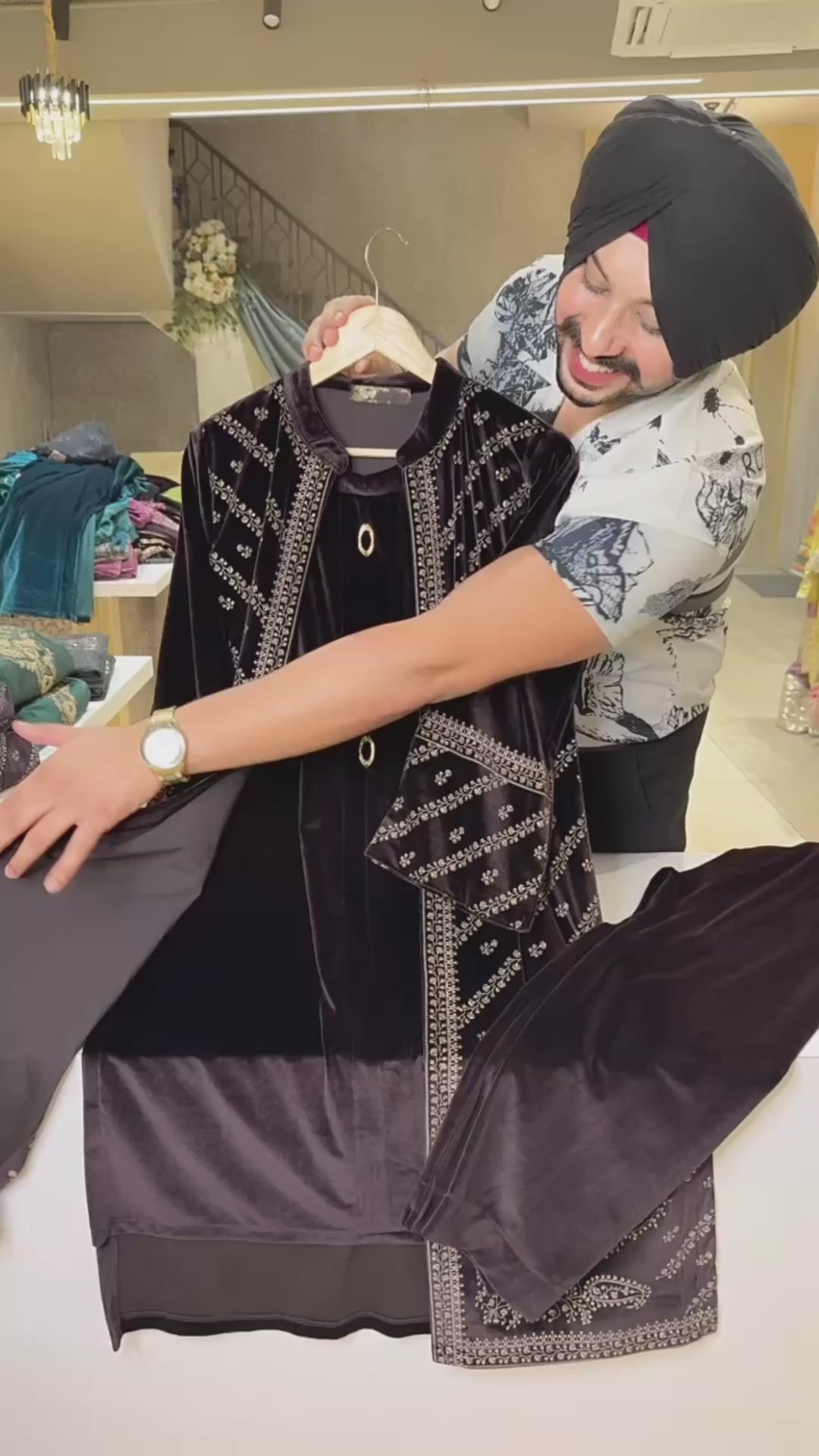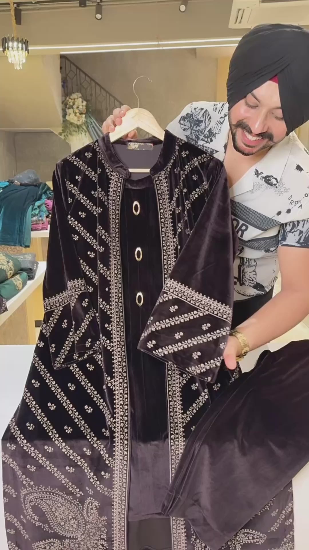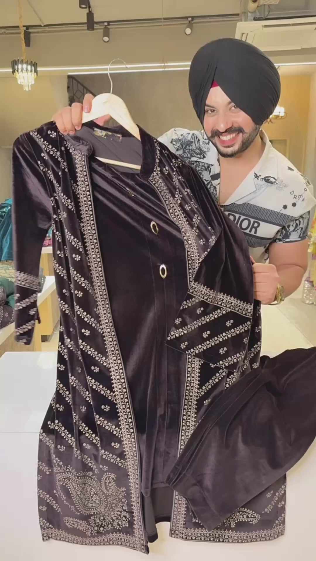 Dark wine Heavy Strechable Velvet Coord set with Shrug(Attached)