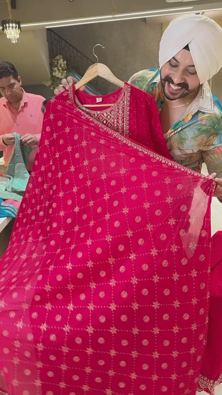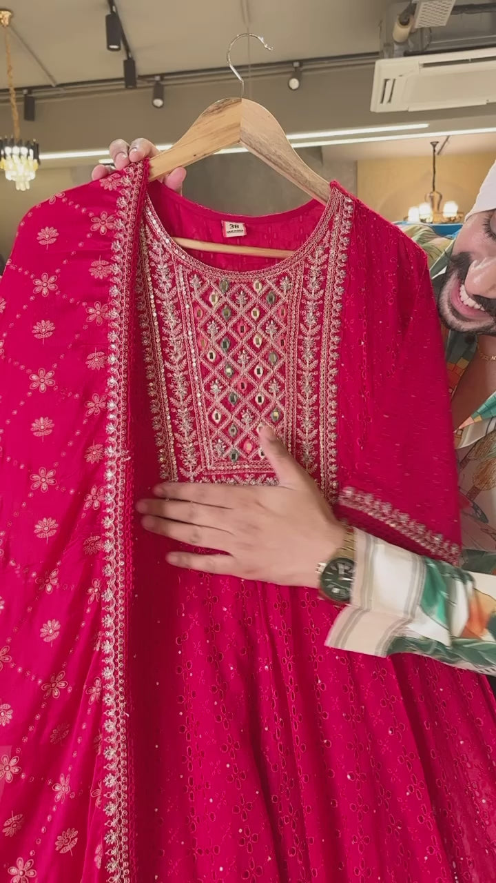 Anari pink Georgette Heavy Embroidered Anarkali Suit