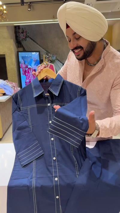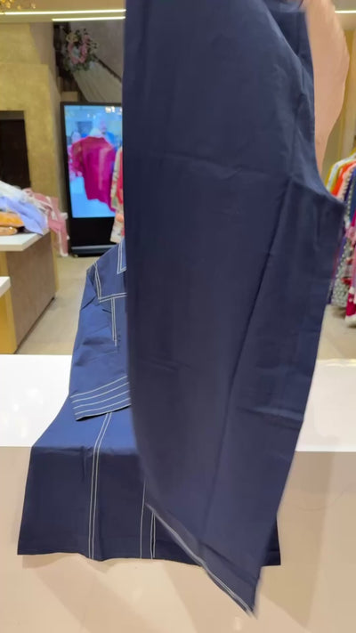 Denim Blue pure Cotton Collar Neck Office Wear Coord set