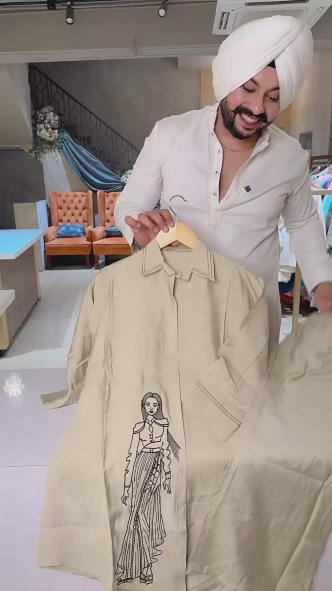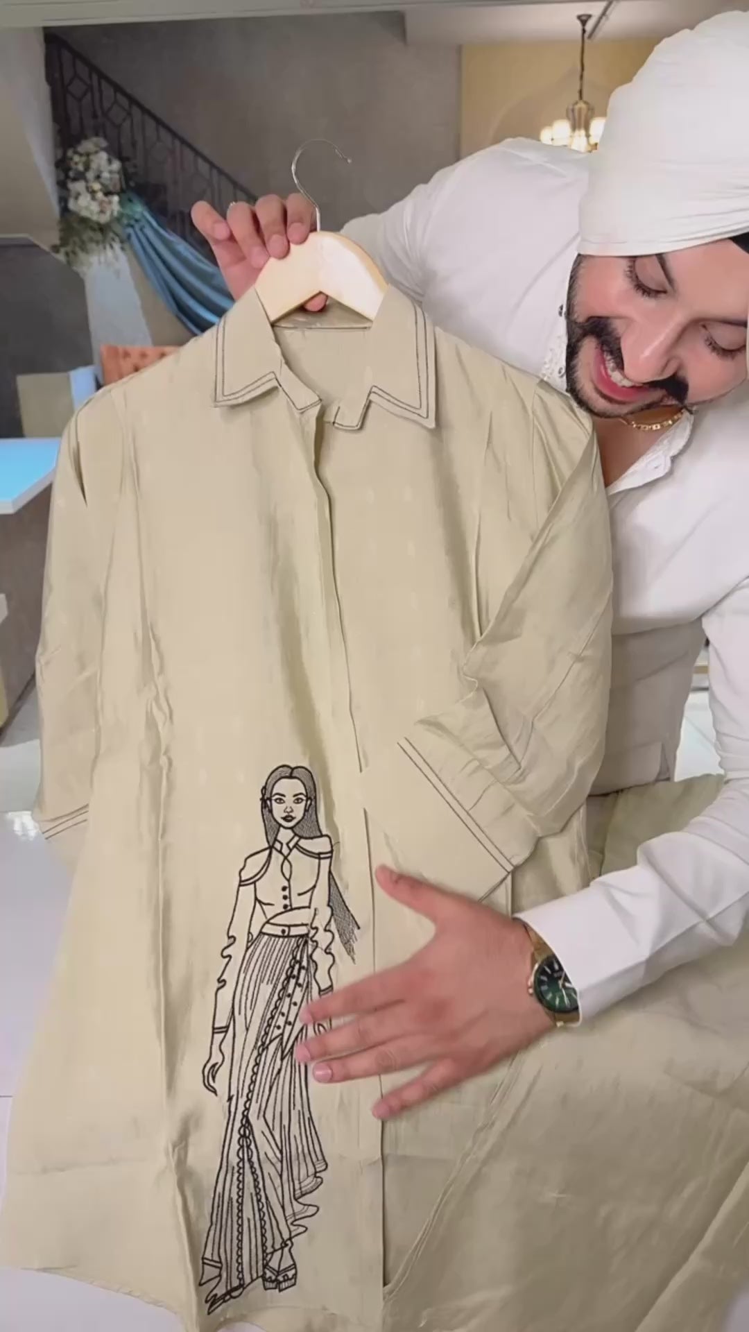 Nude Color Soft silk Collar Neck Doll Embroidered Coord set
