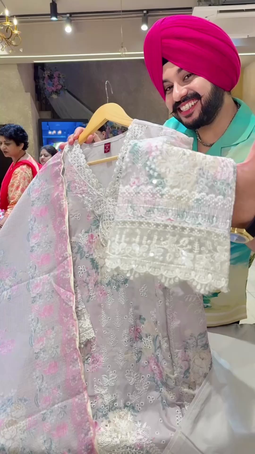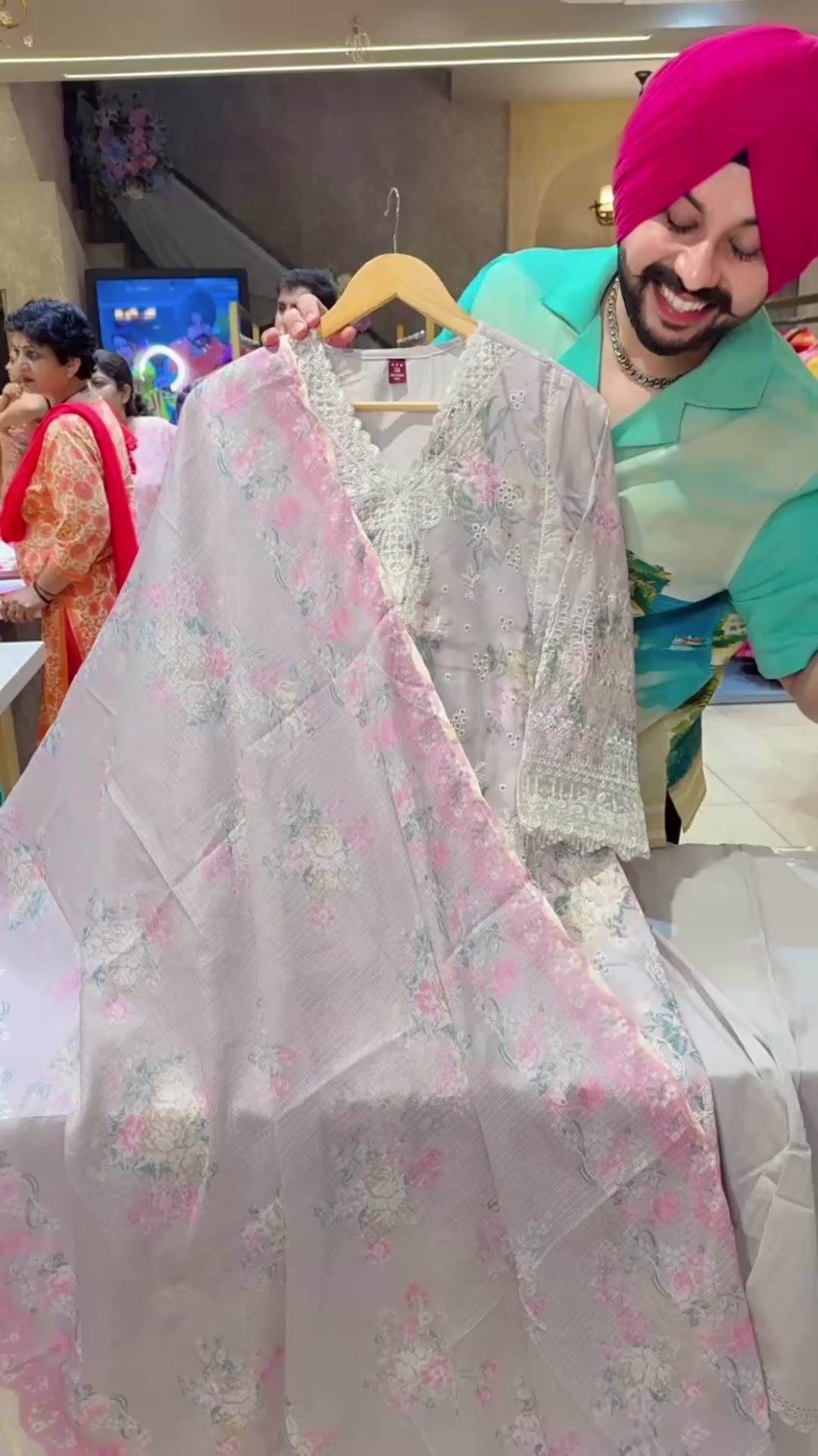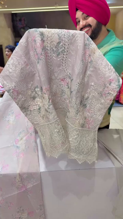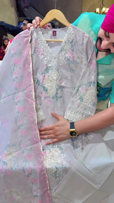 English Grey Pure Cotton Heavy embroidered Kashmiri Suit with Beautiful Kota Doria Duppata