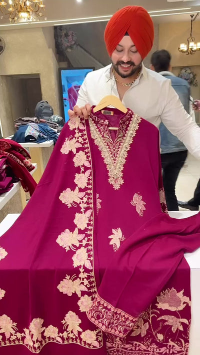 Faalsa Woolen Party Wear Straight Suit with Beautiful Embroidered Duppata