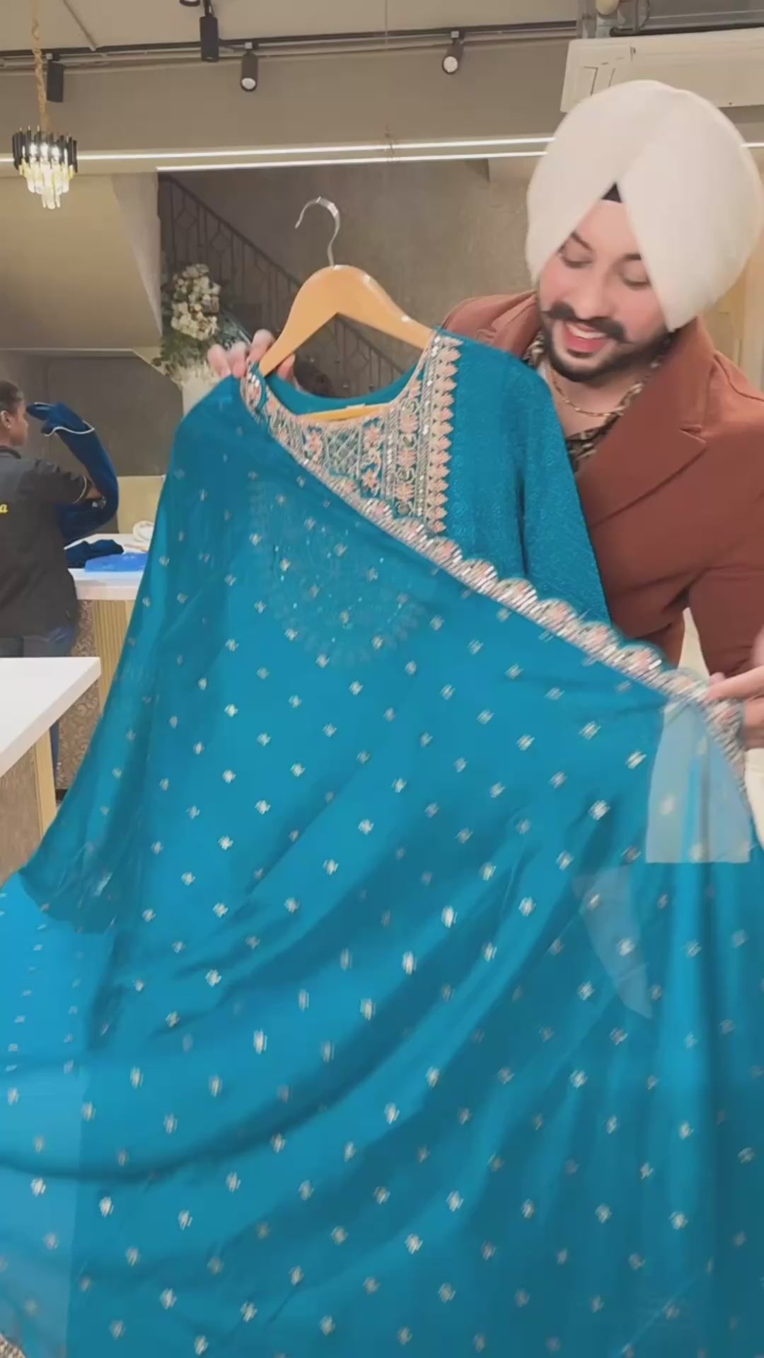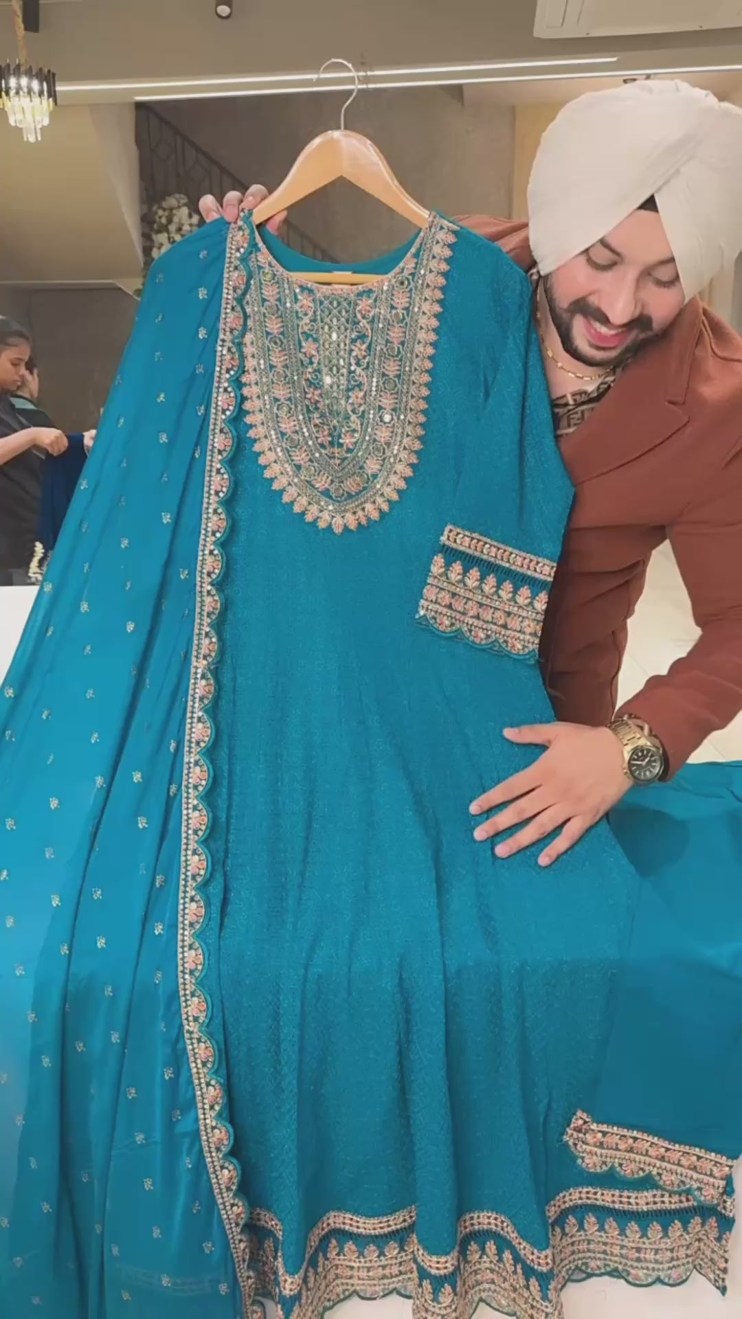Firozi Georgette Fully embroidered & Shifli Work Anarkali Suit with Beautiful Chinon Duppata