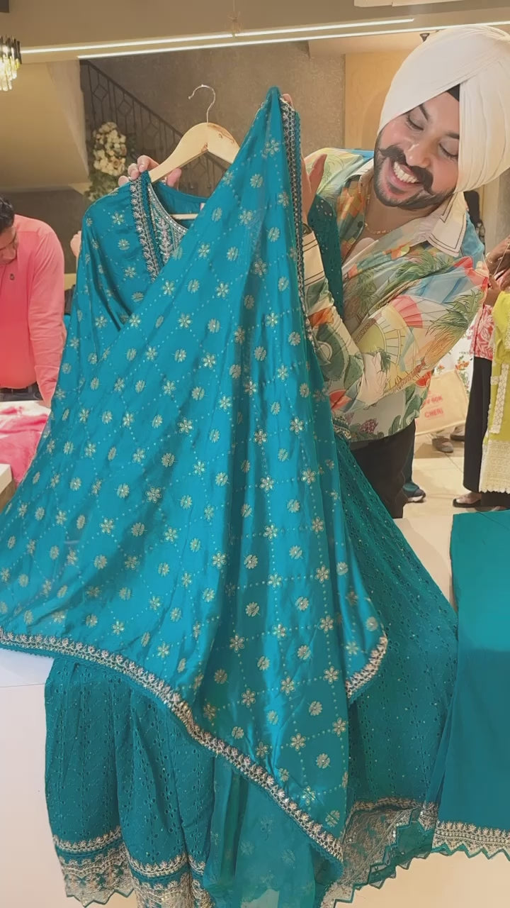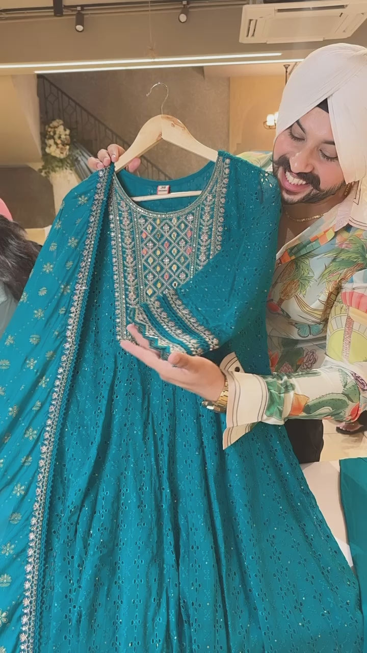 Firozi Georgette Heavy Shifli work Anarkali Suit