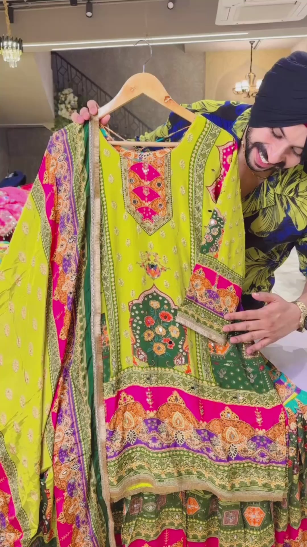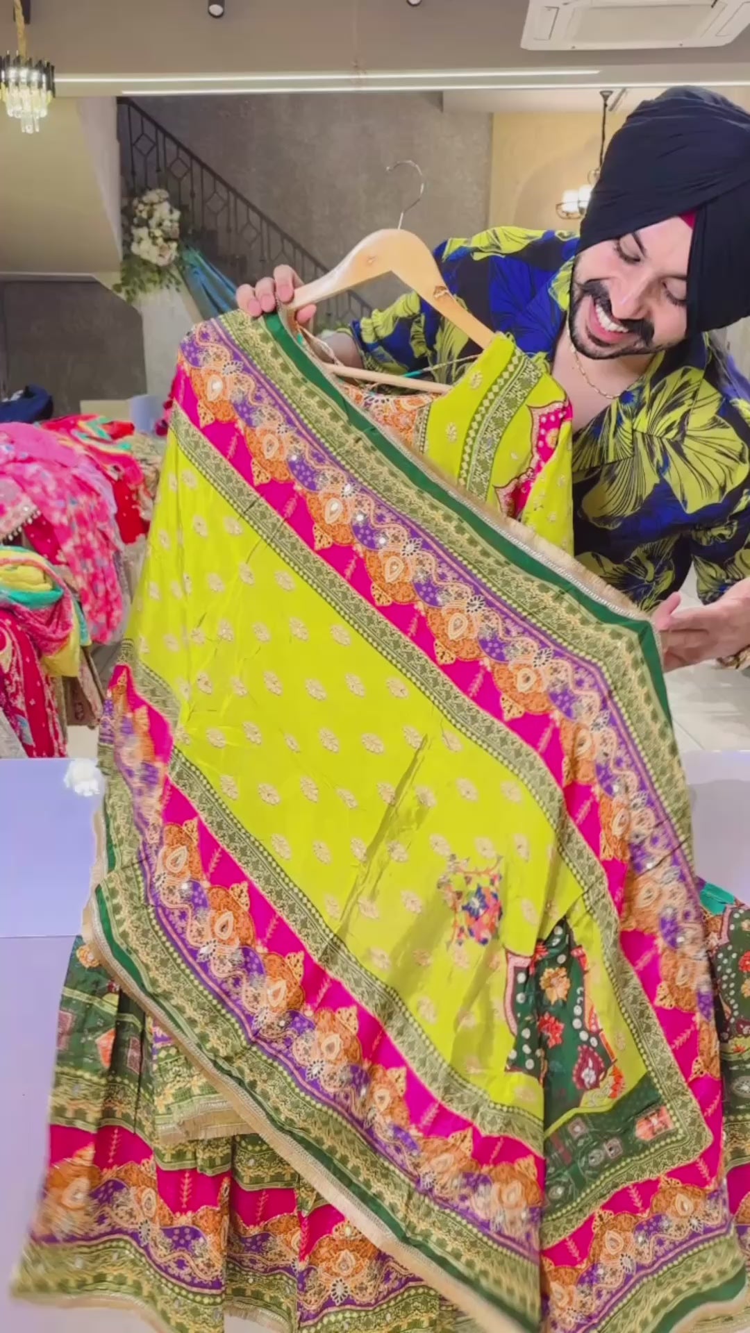 fluorescent crepe Heavy Garara Set with Beautiful stole