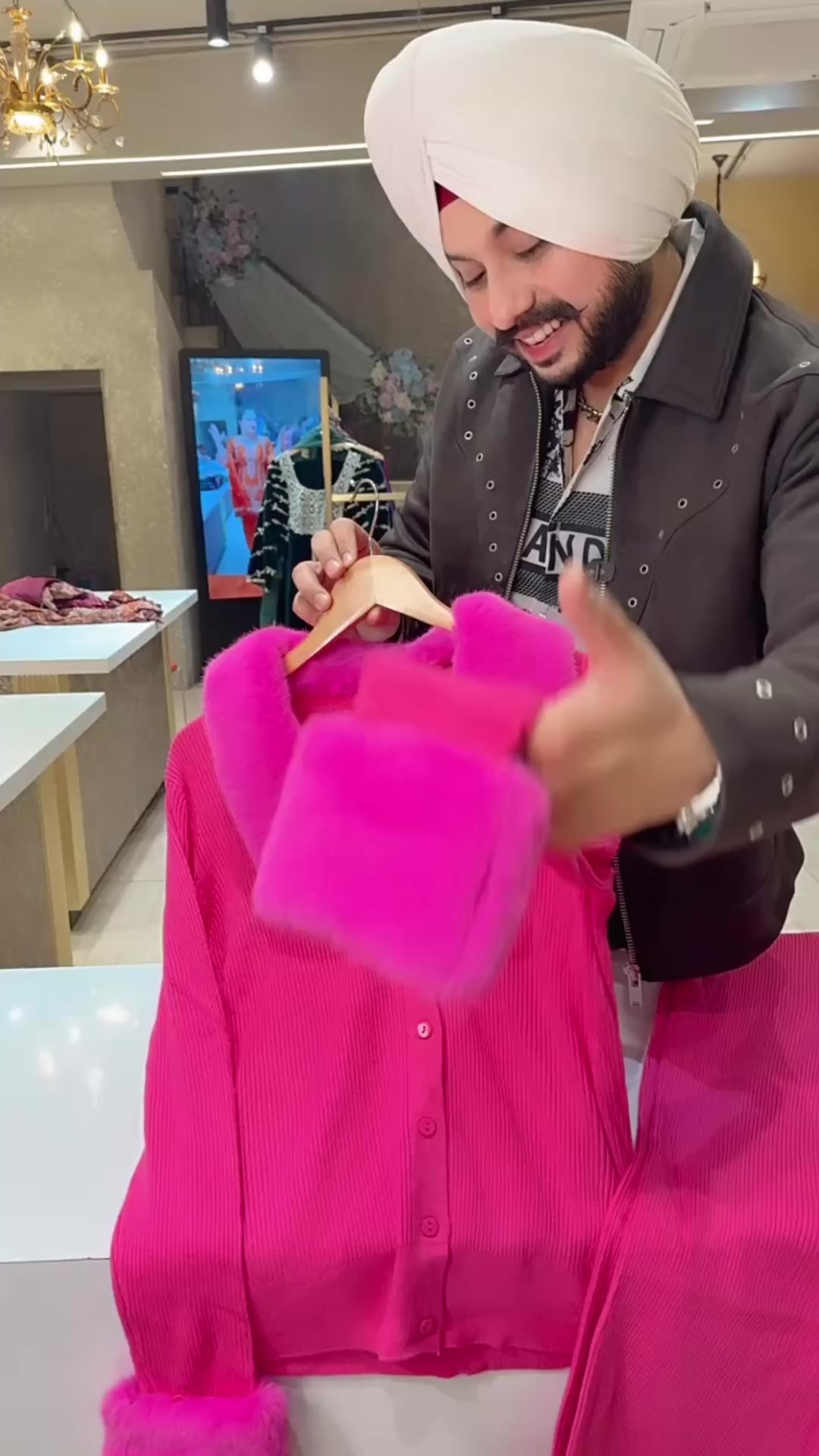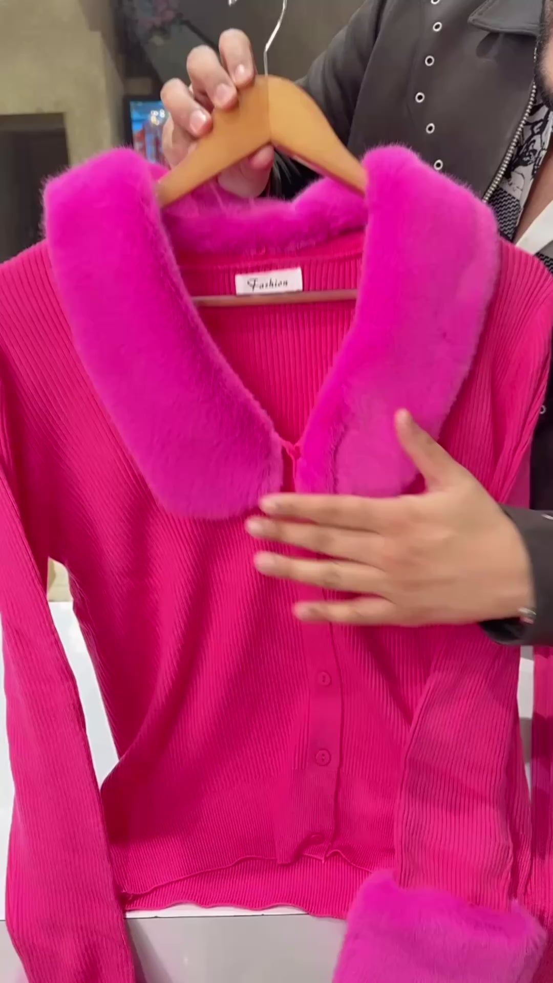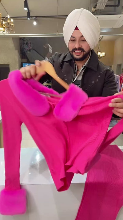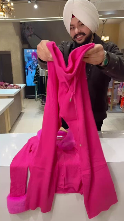 Hot pink Imported Woolen Western Coord set with Stylish Furr on Neck & sleeves