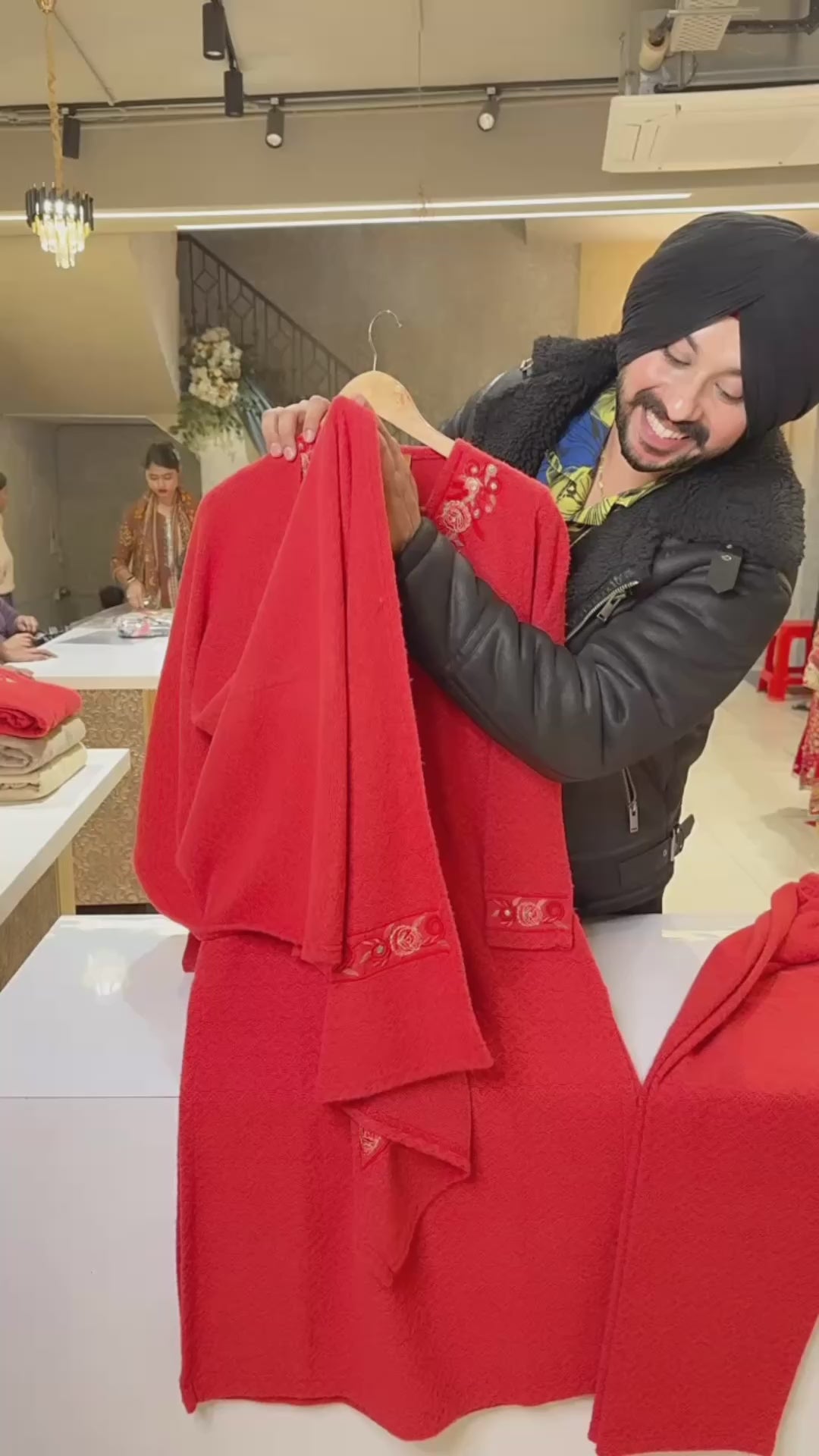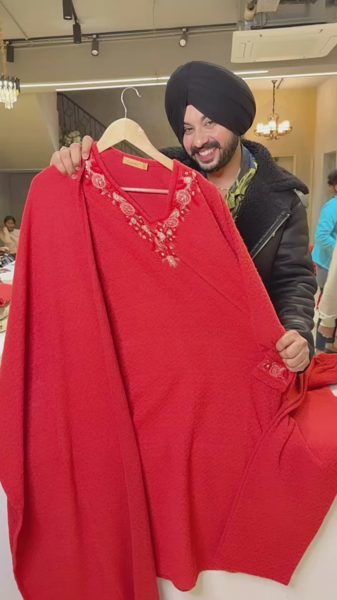 Gajri Woolen Office Wear suit with embroidered work on neck