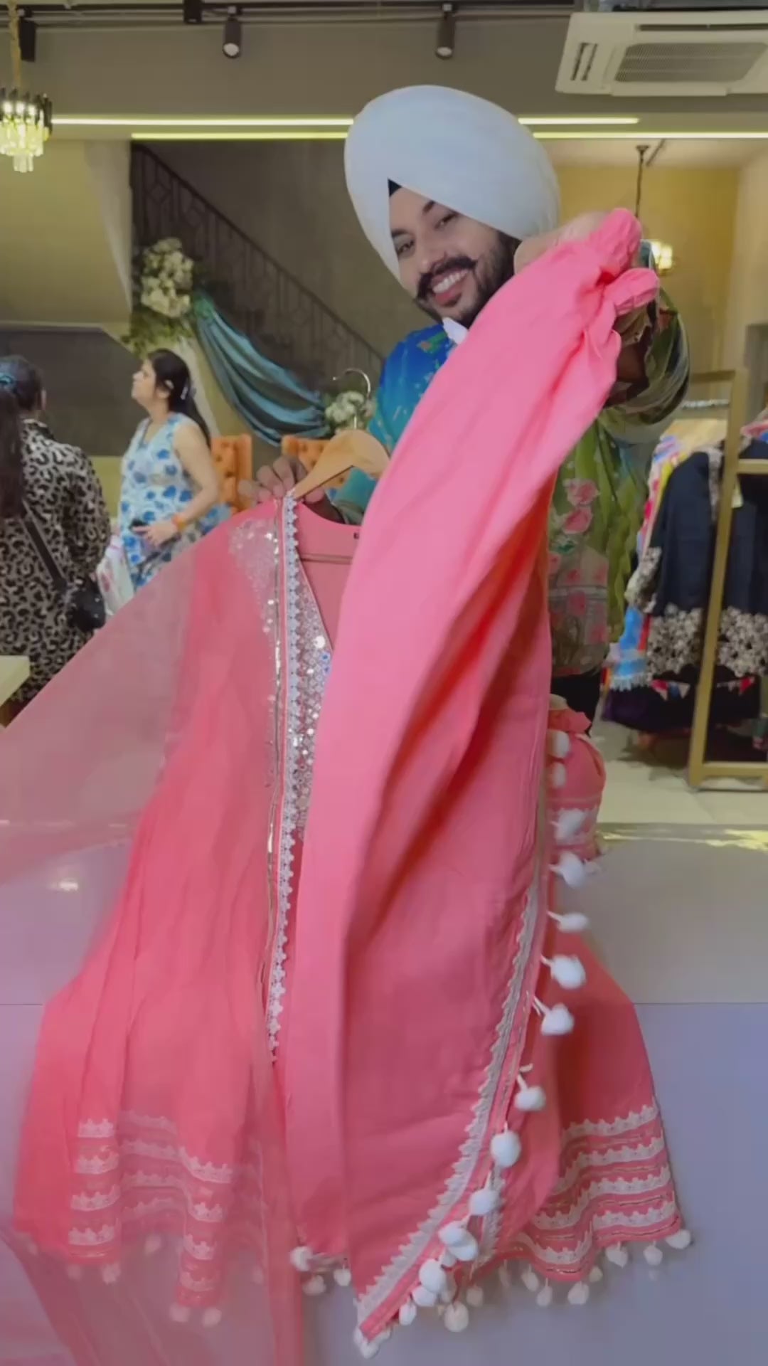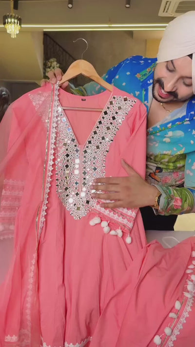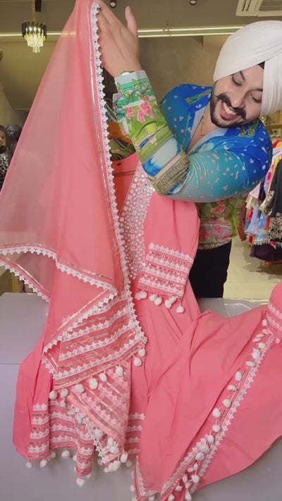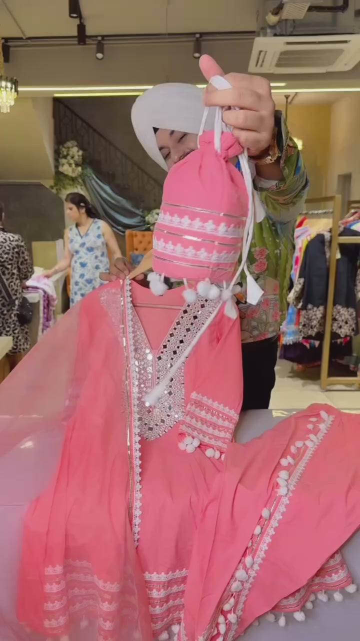 Gajri pink Cotton Heavy Mirror Work Pom-Pom Paplum Dhoti Suit with Cure Potli