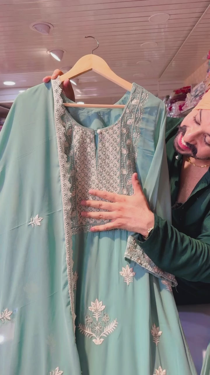 Light Seagreen Georgette Heavy Embroidered Pakistani Suit