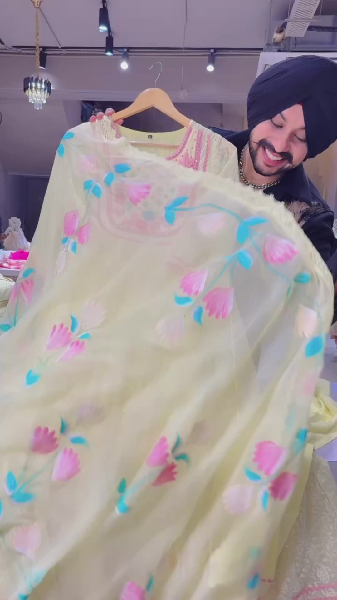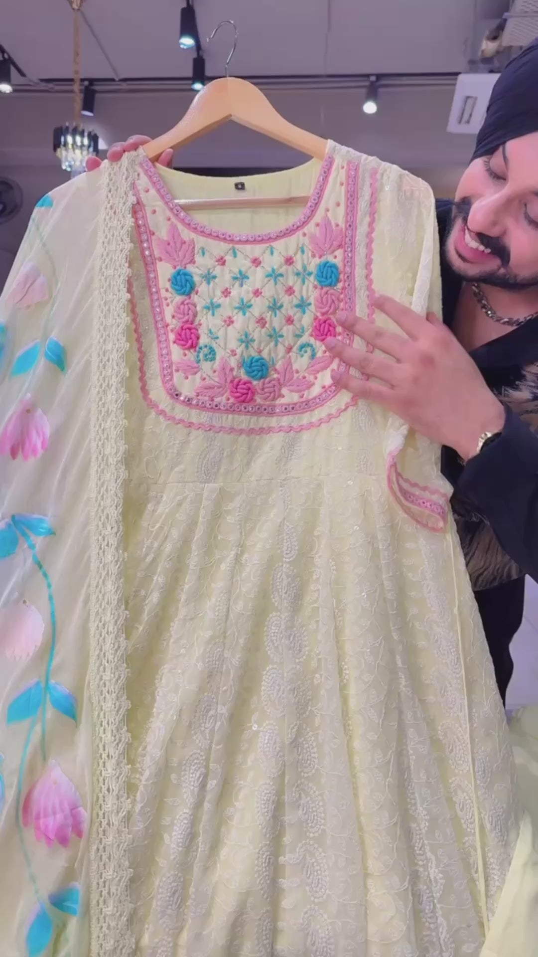 Georgette Heavy Self embroidered Anarkali Suit with Hand embroidery work on neck & hand painted Chiffon Duppata