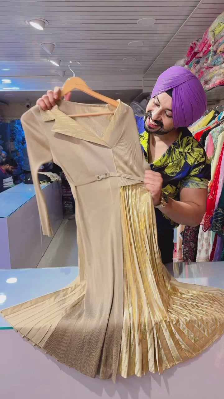 Goldenish Biege Fully stretchable Free size imported Dress
