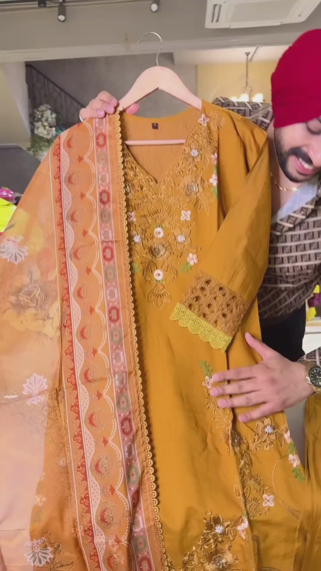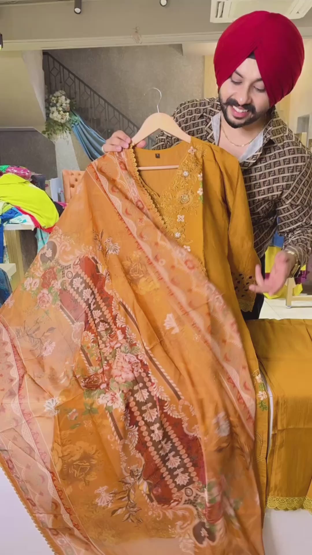 Goldenish Mustard Roman Silk Embroidered Pakistani Suit With Beautiful Organza Duppata