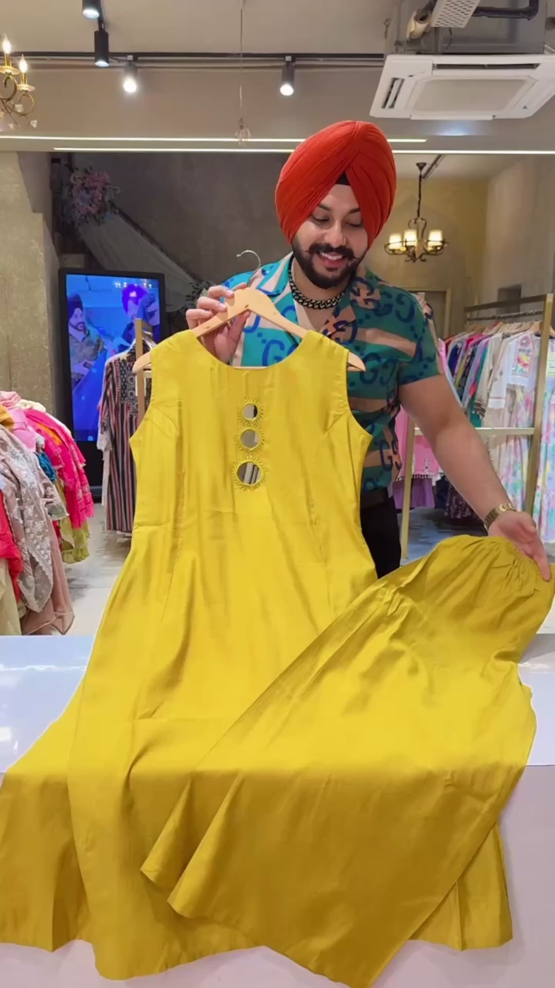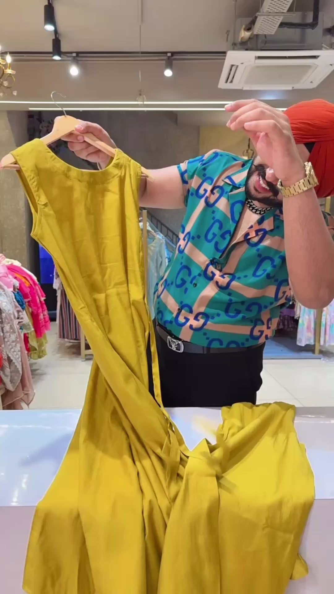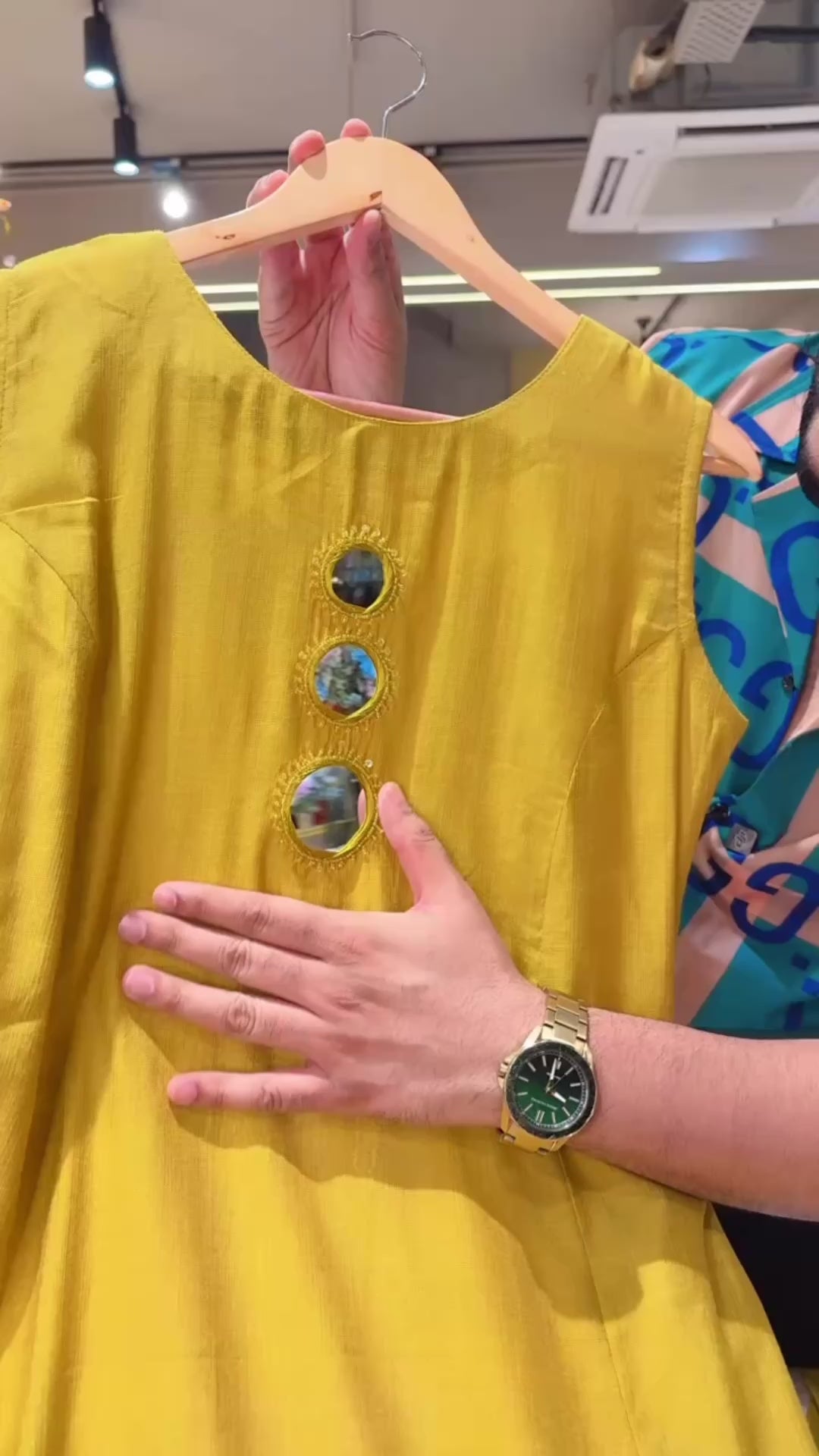Goldenish yellow Imported Stuff Mirror work Long Length Cut sleeves Coord set