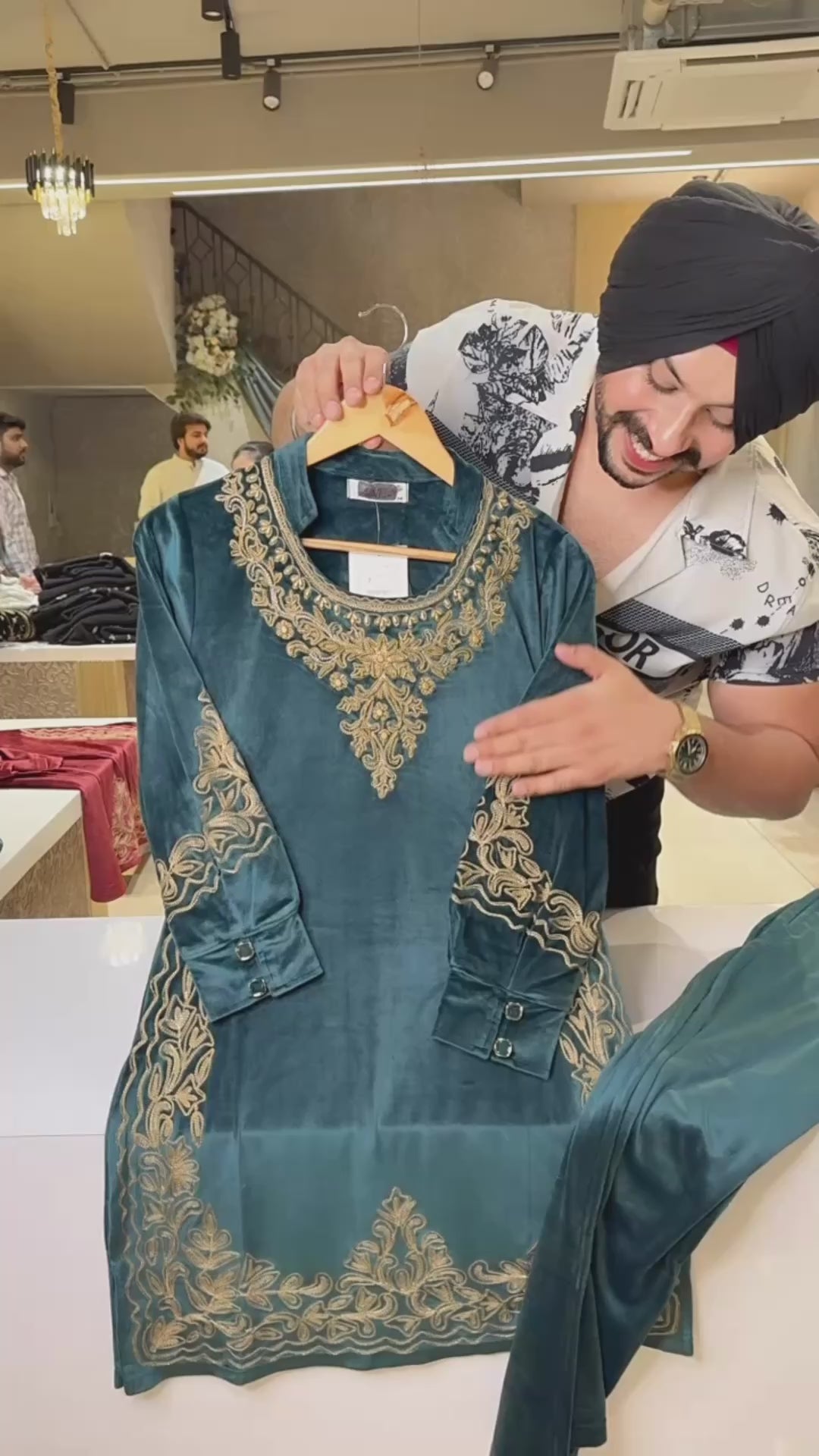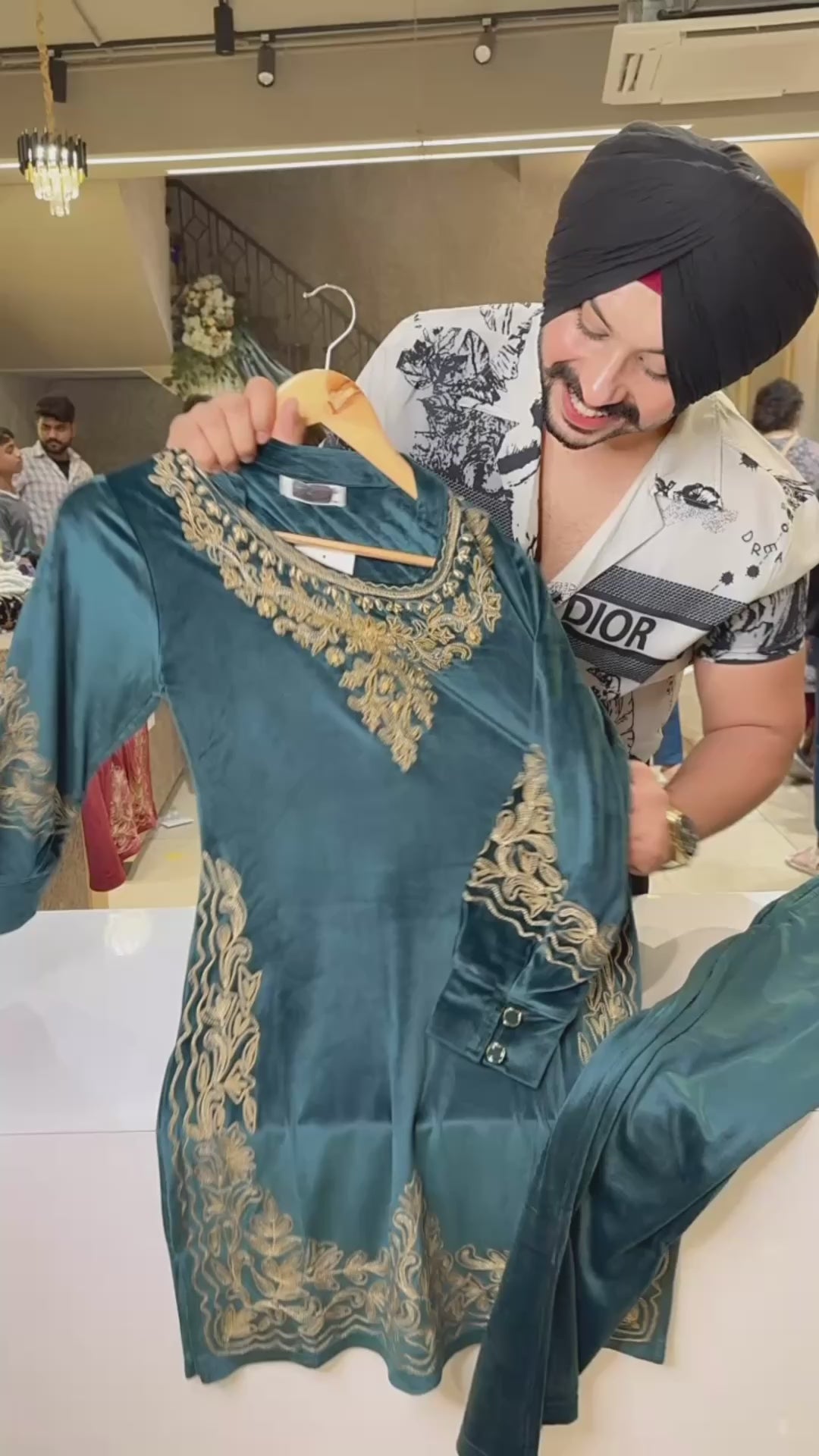 Peacock Heavy Strechable velvet Embroidered Coord set