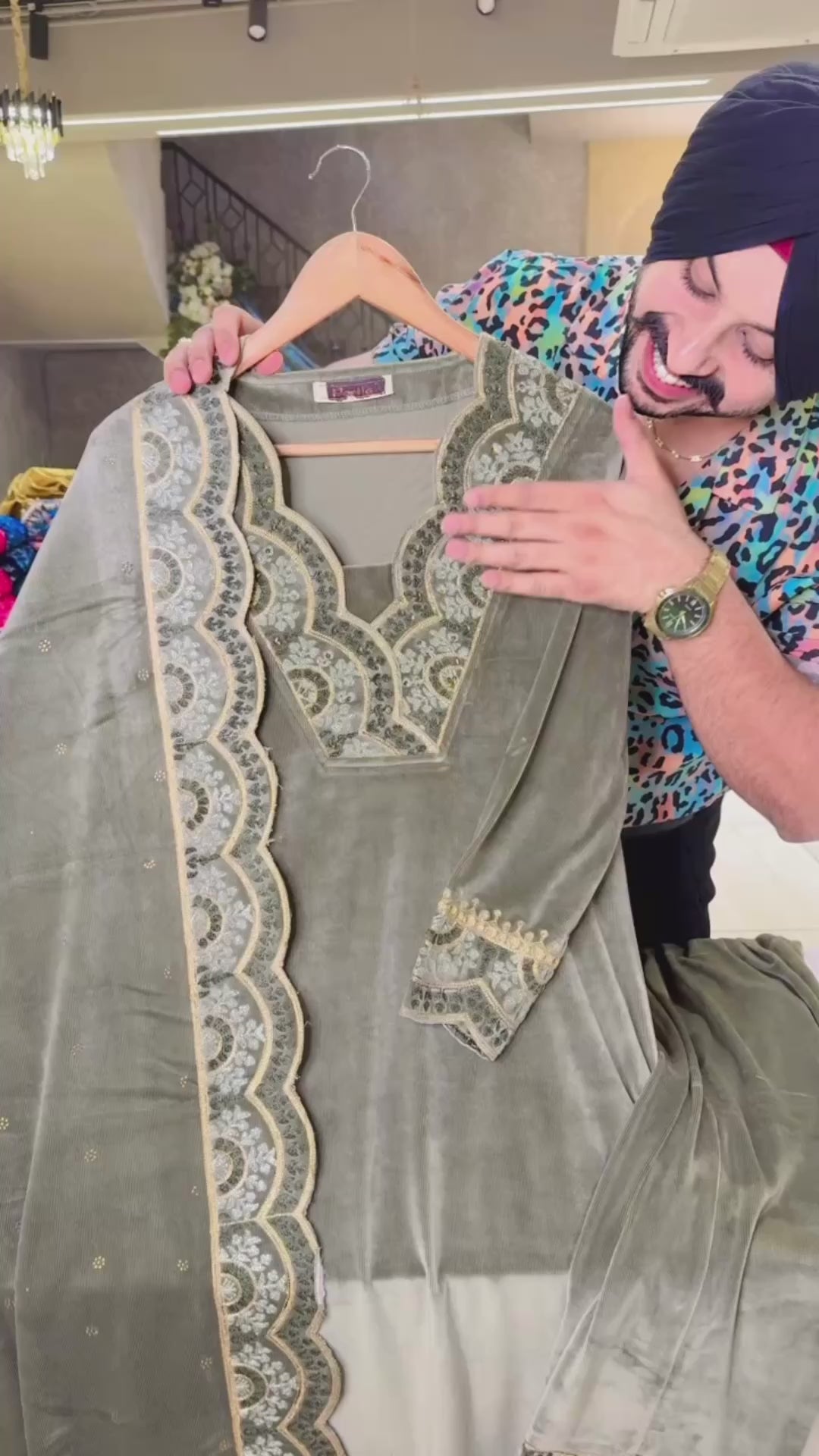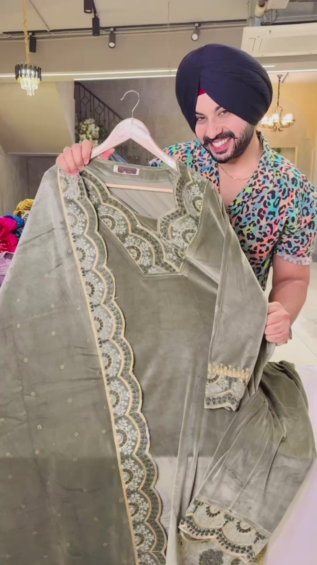 Light Olive Green Heavy Velvet Fully Strechable Straight Suit with Beautiful Duppata