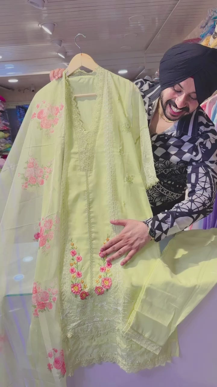 Light green soft organza Embroidered Pakistani suit with beautiful Duppata