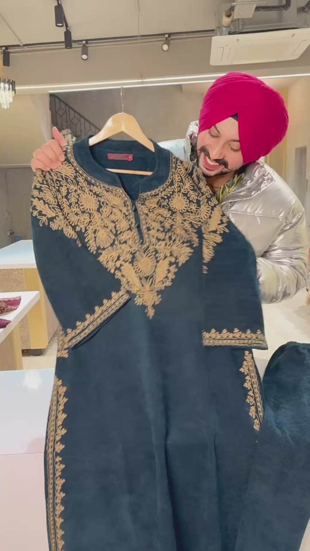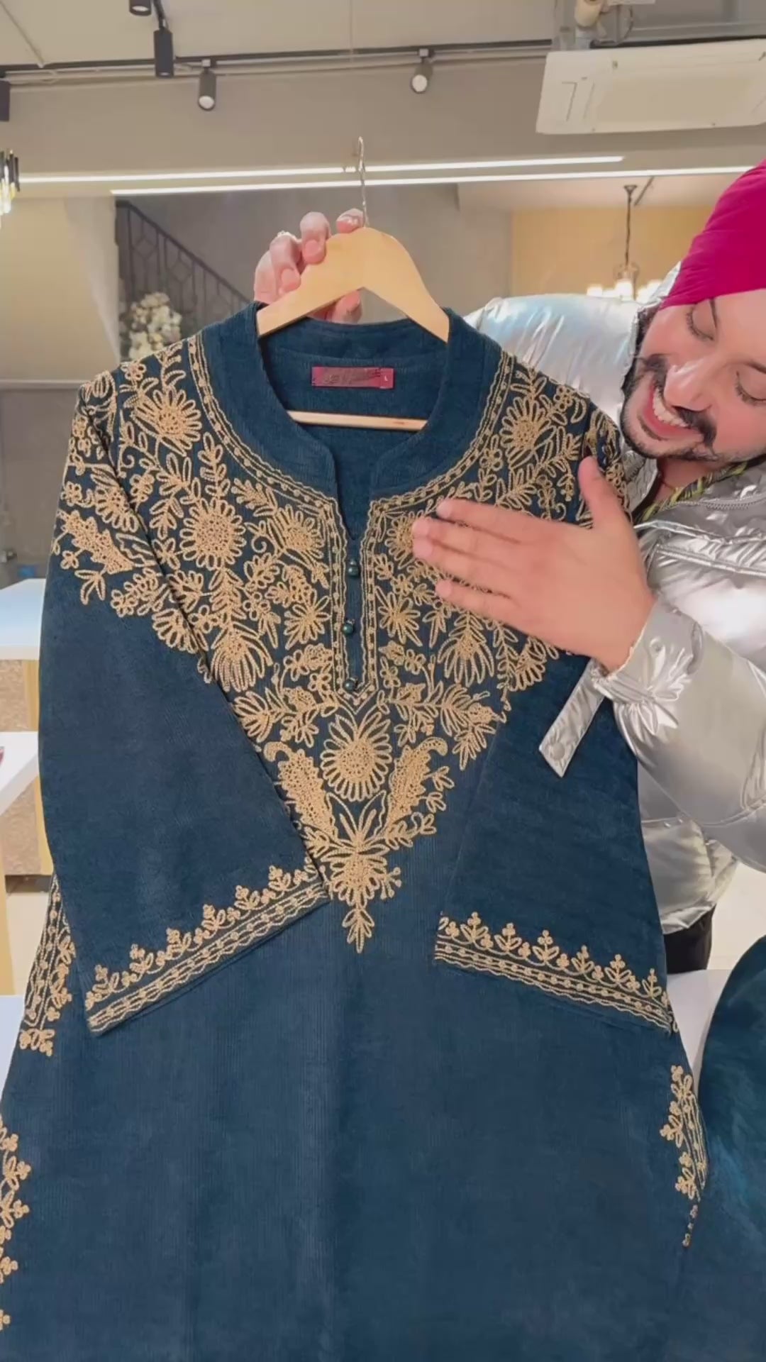 Peacock Fully embroidered Cotrise velvet Kashmiri Phiran Coord set
