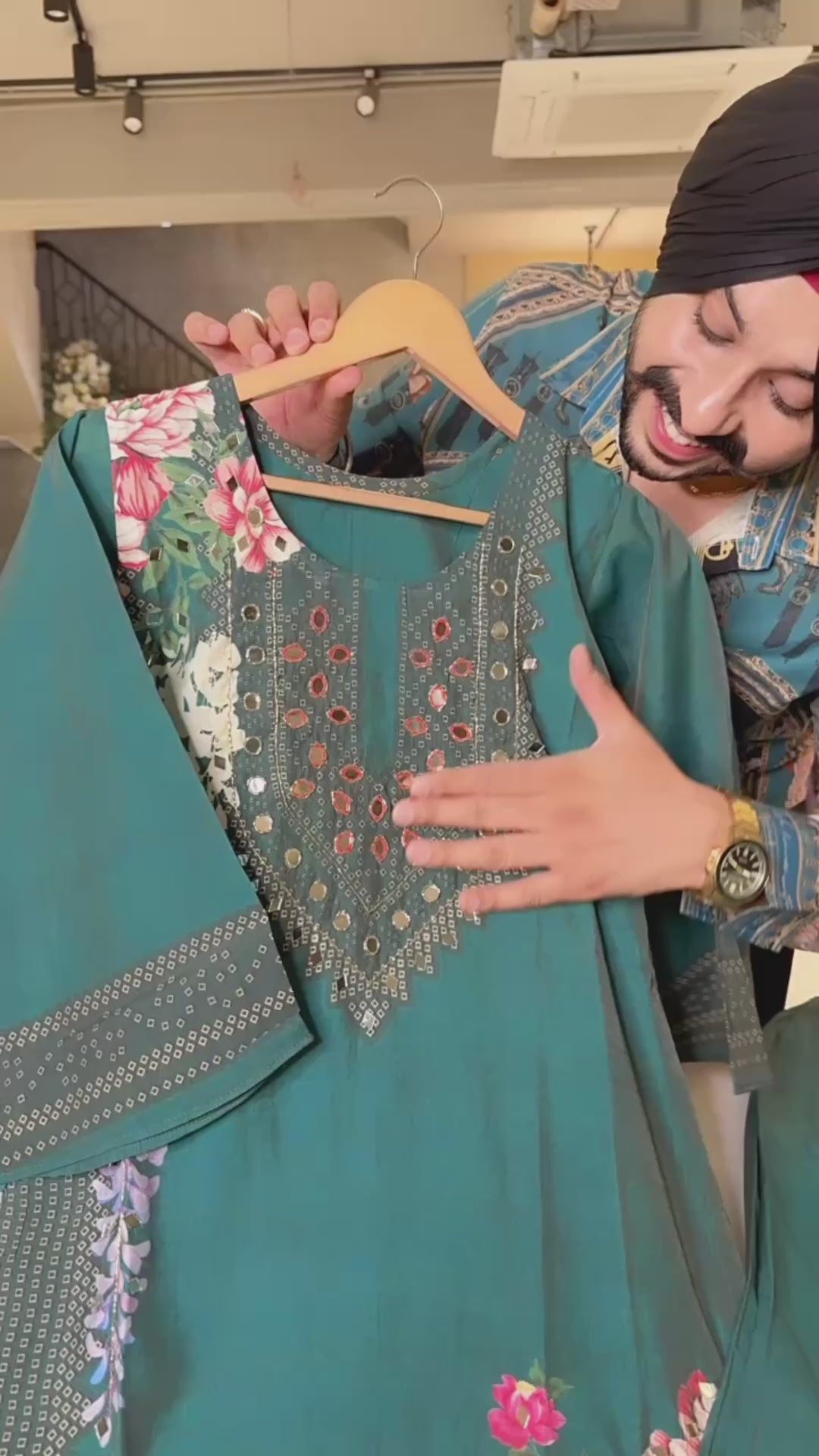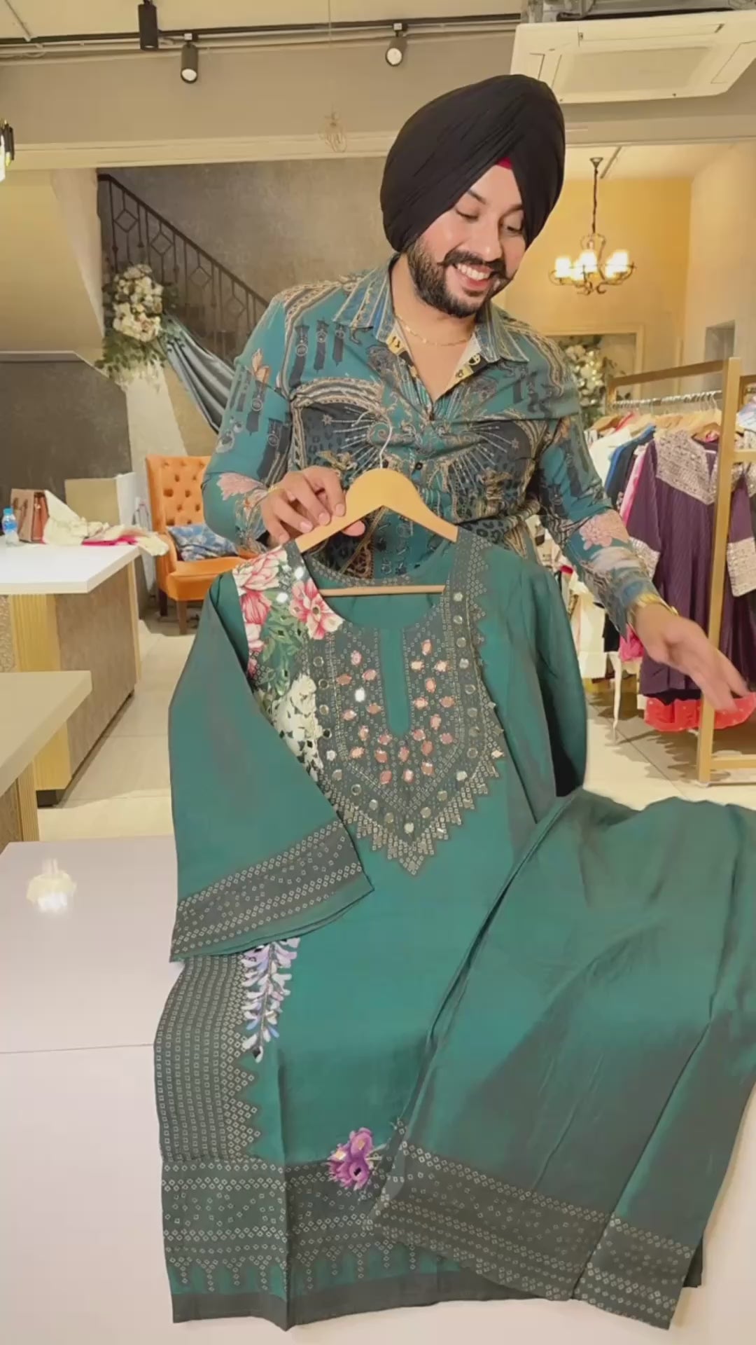 Leaf Green Roman Silk party Wear Coord set with Beautiful Hand Embroidery work