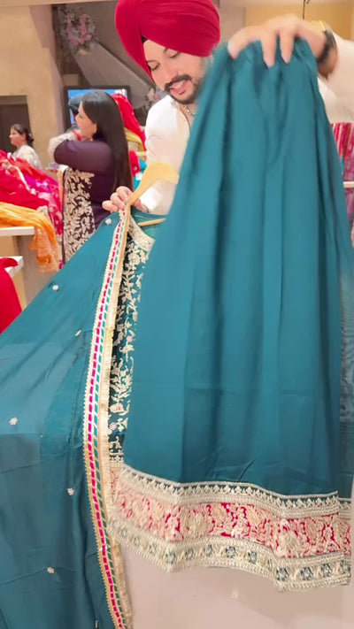 Peacock Heavy Embroidered Full Flair Plazo suit with Beautiful Duppata