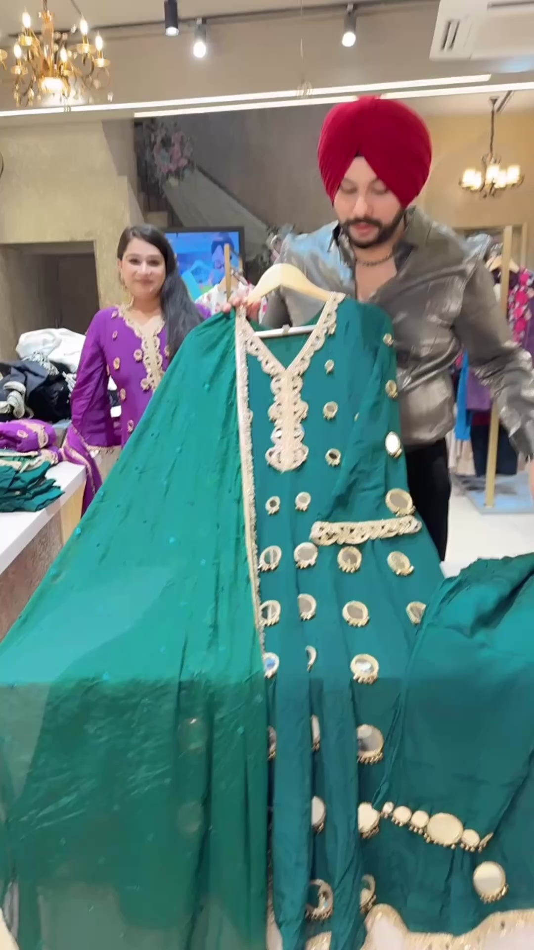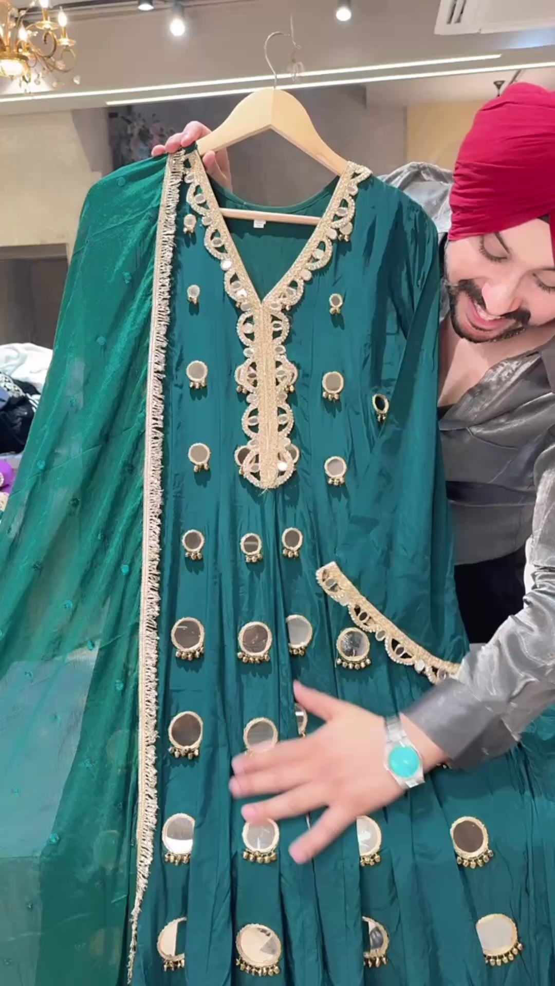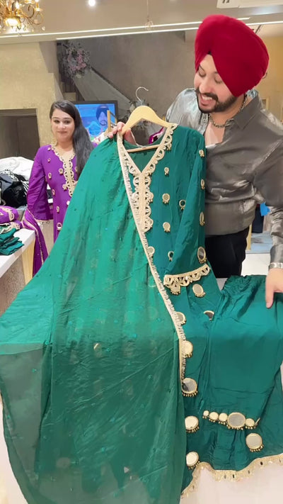 Bottle Green Crepe Front & Back Fully Mirror Work Party Wear Anarkali suit with Beautiful Chinon Duppata