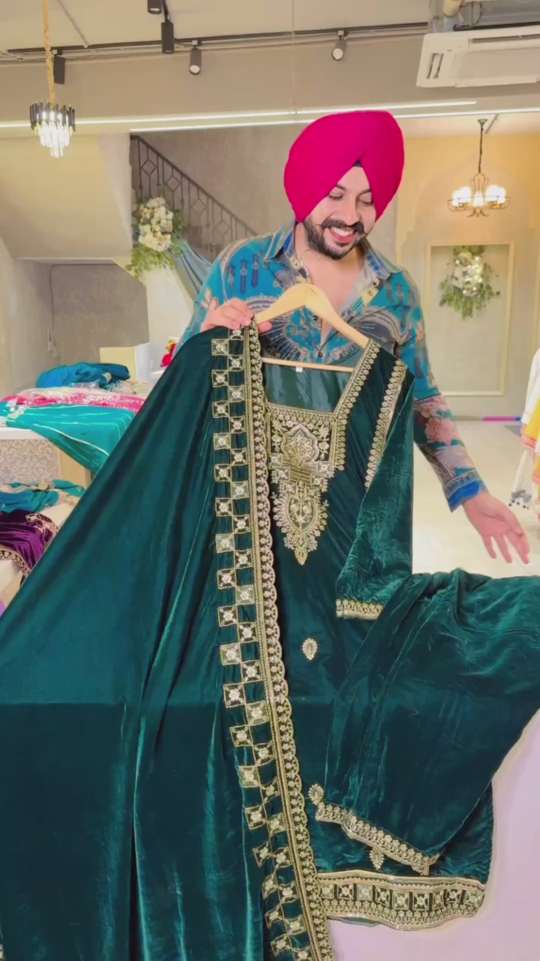 Green velvet Heavy embroidered suit with beautiful Duppata