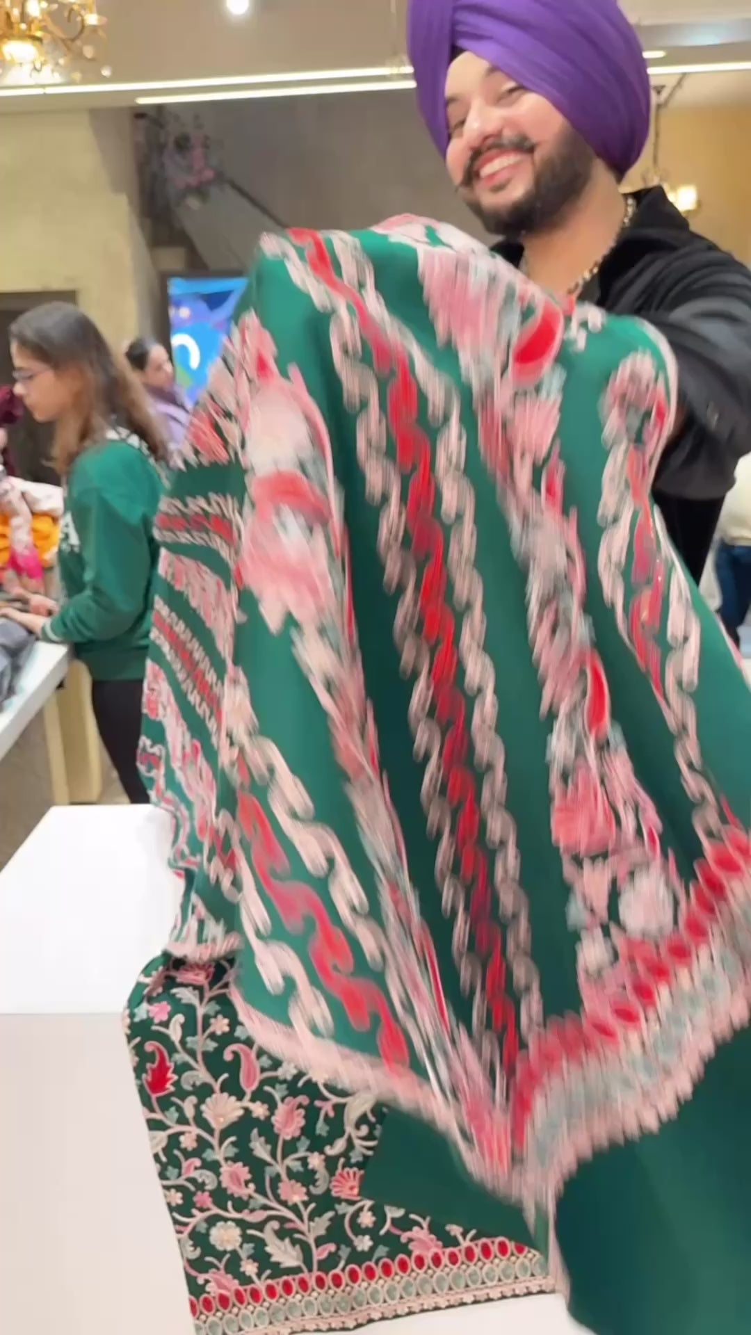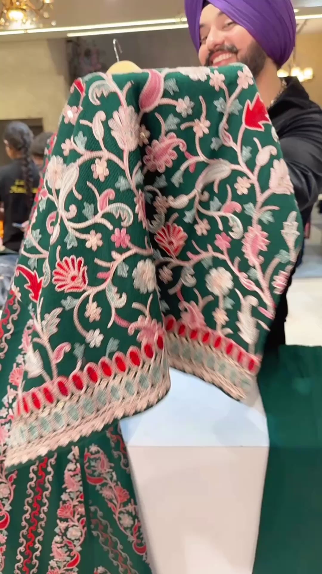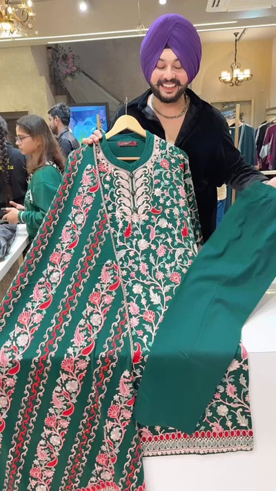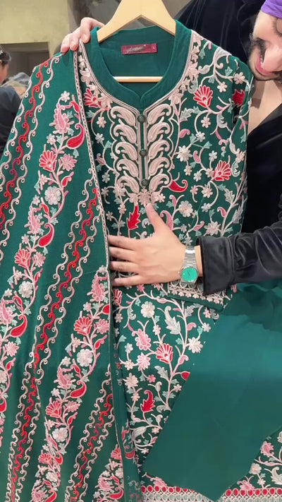 Dark Green Woolen Heavy Kashmiri Embroidered party Wear suit with Heavy woolen Duppata