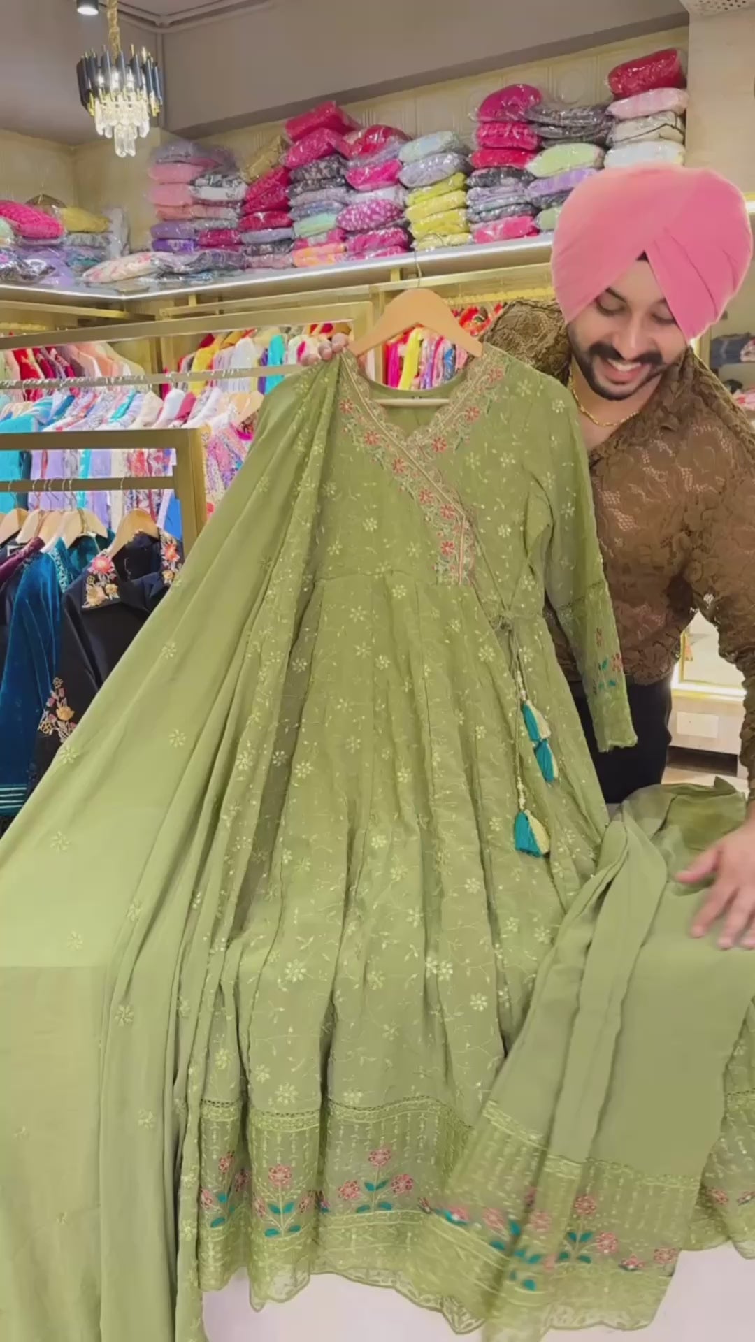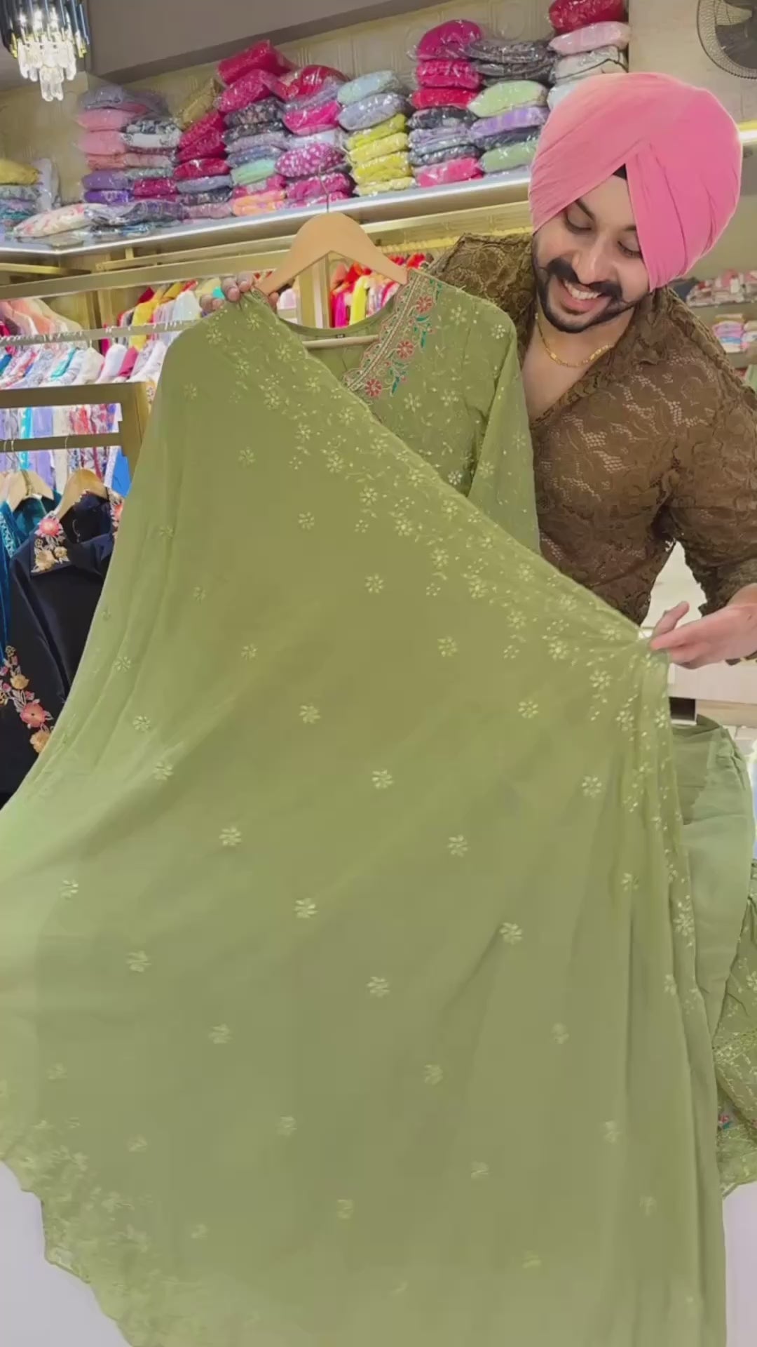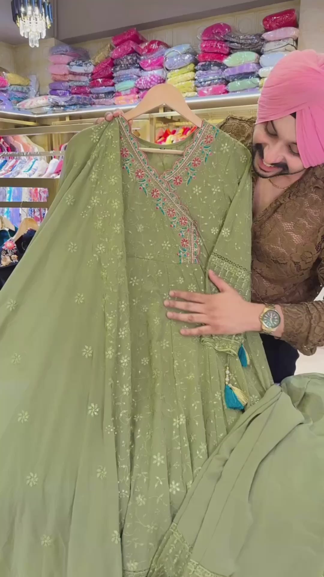 Green Georgette Fully embroidered Angrakha Anarkali Suit with embroidered Duppata