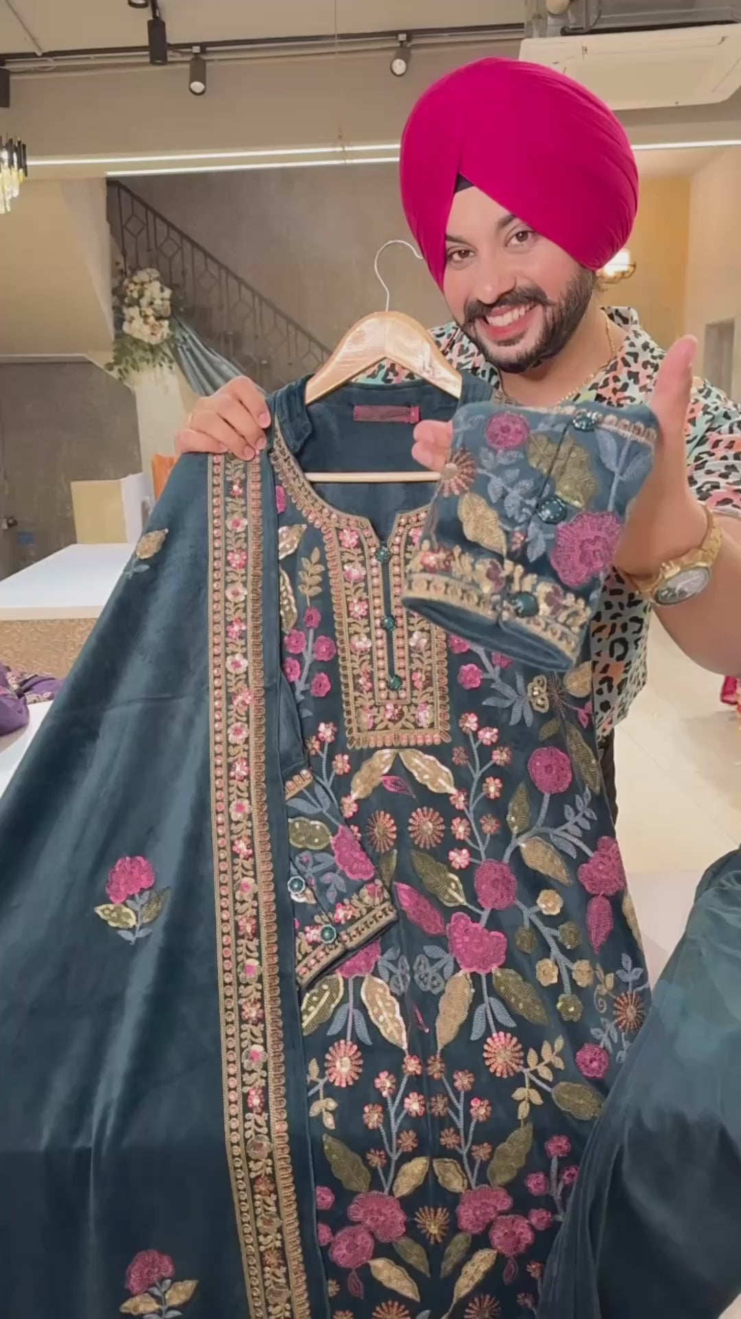 Teel Marriage Wear heavy embroidered Strechable Velvet suits