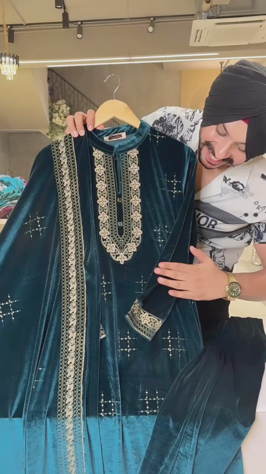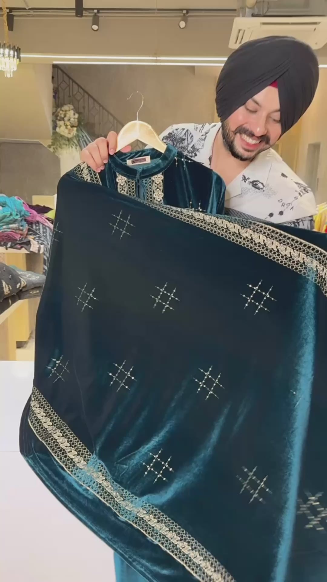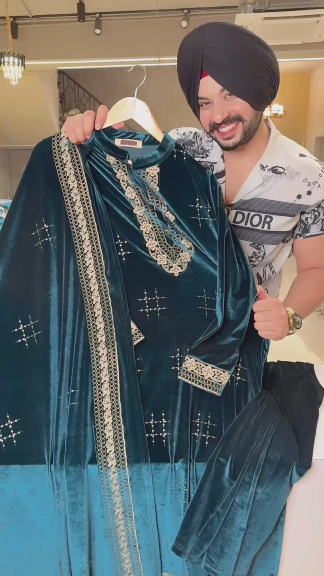 Peacock Heavy Strechable Velvet Embroidered Straight Suit with Heavy Duppata