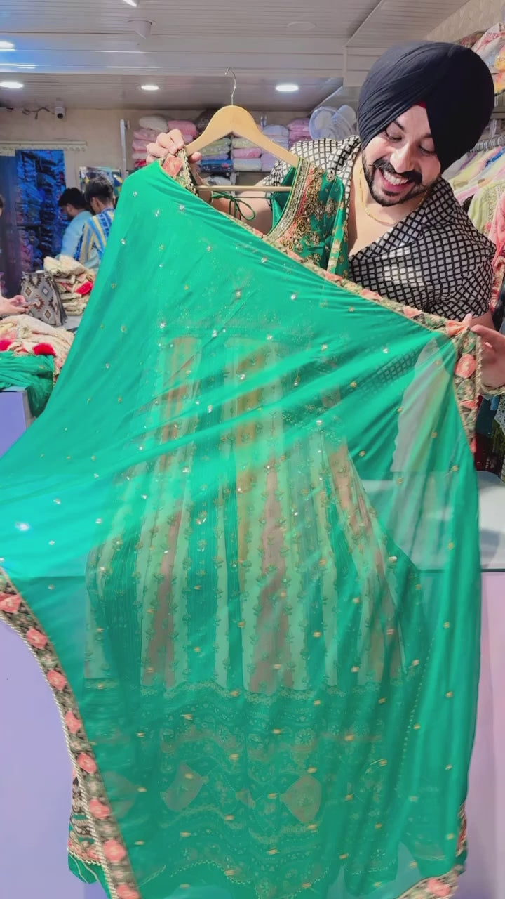 Green Multi coloured mirror Hand Work Chinon Heavy Gown with Beautiful Duppata