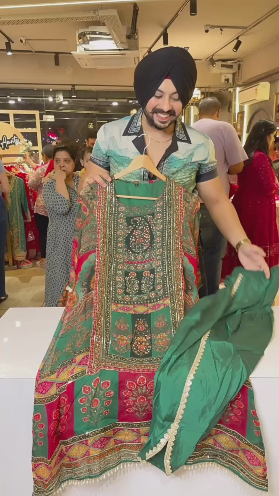 Green Multicolored Soft organza Indowestern C-cut Dhoti suit