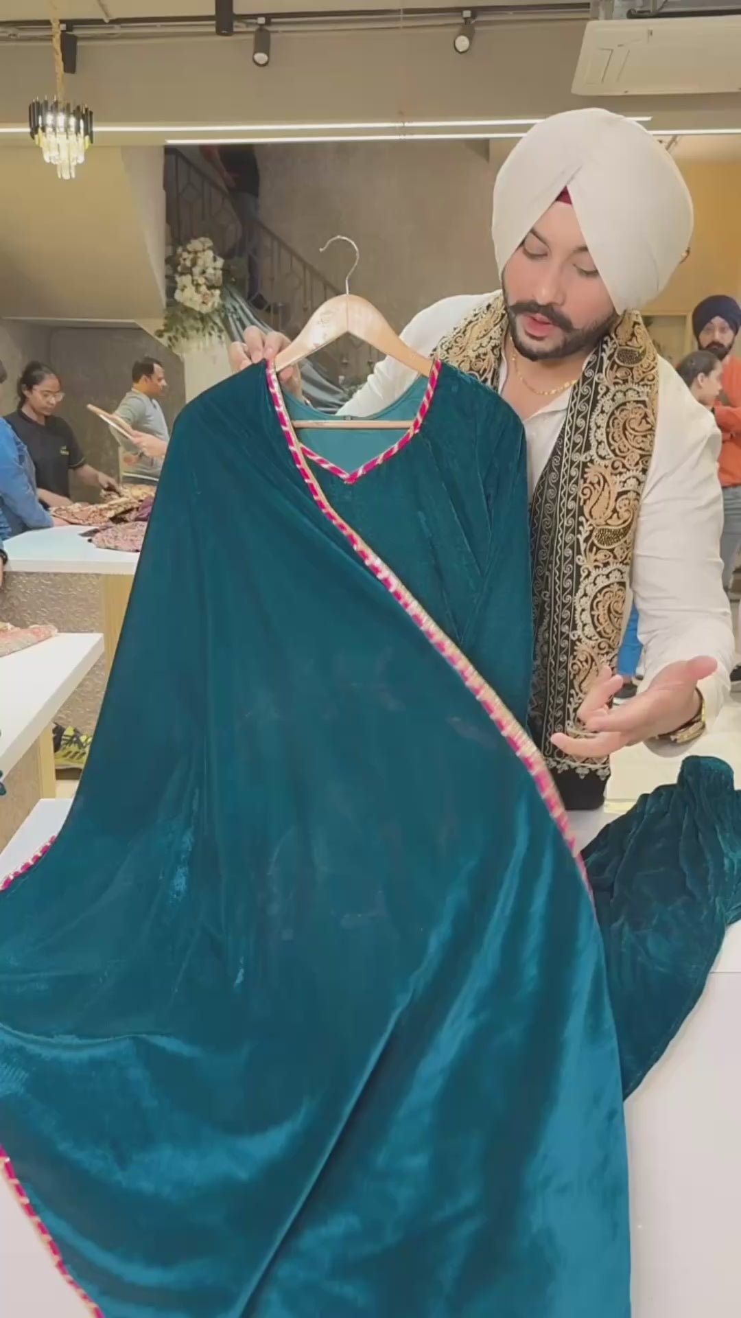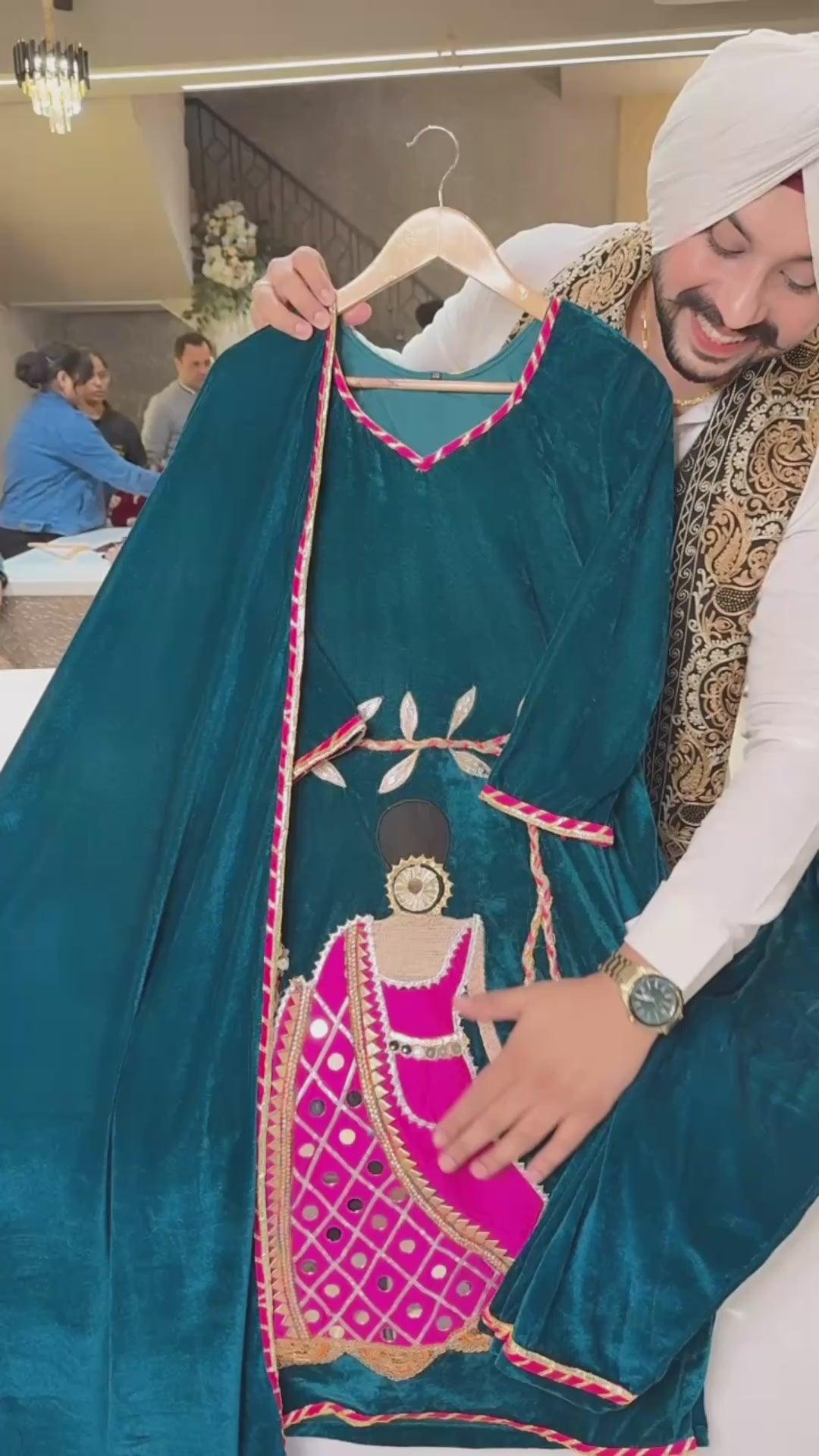 Peacock Premium Velvet Girlish Hand Doll embroidered Straight Suit
