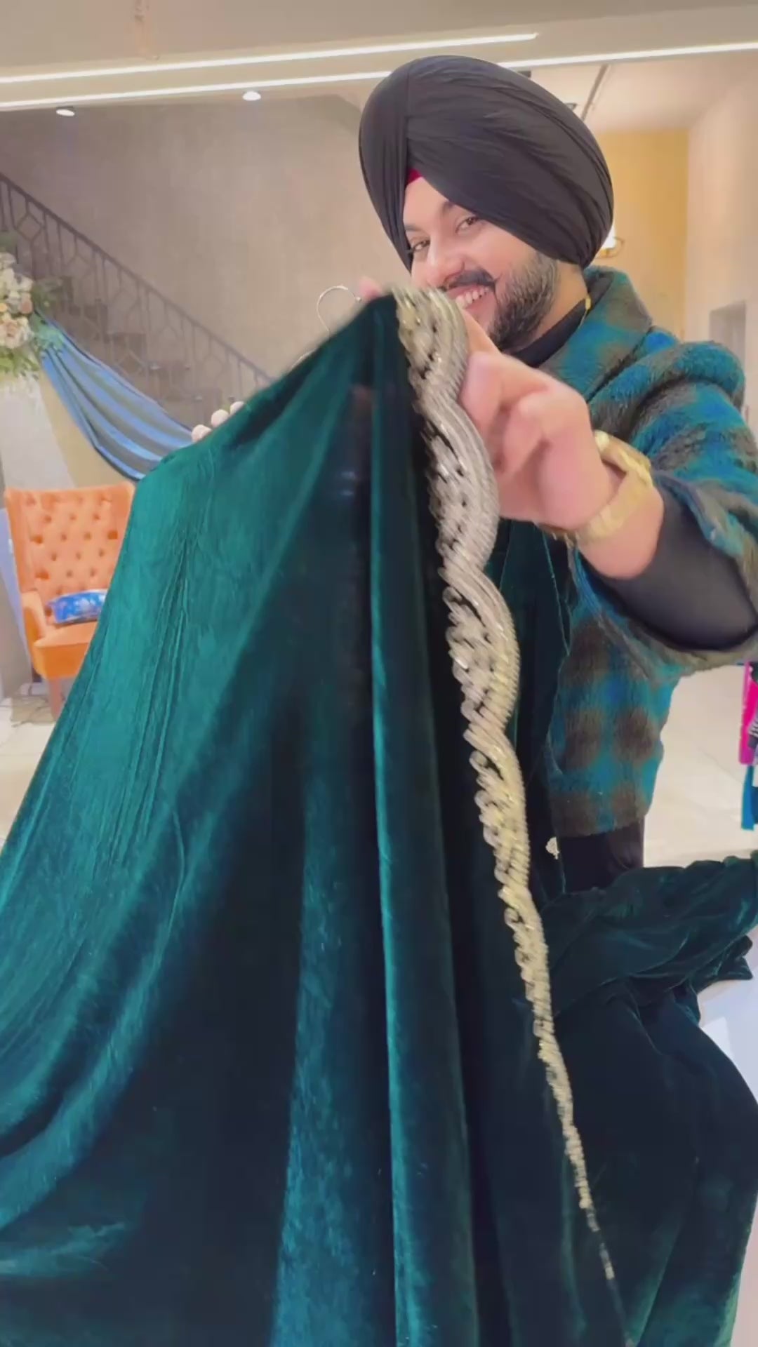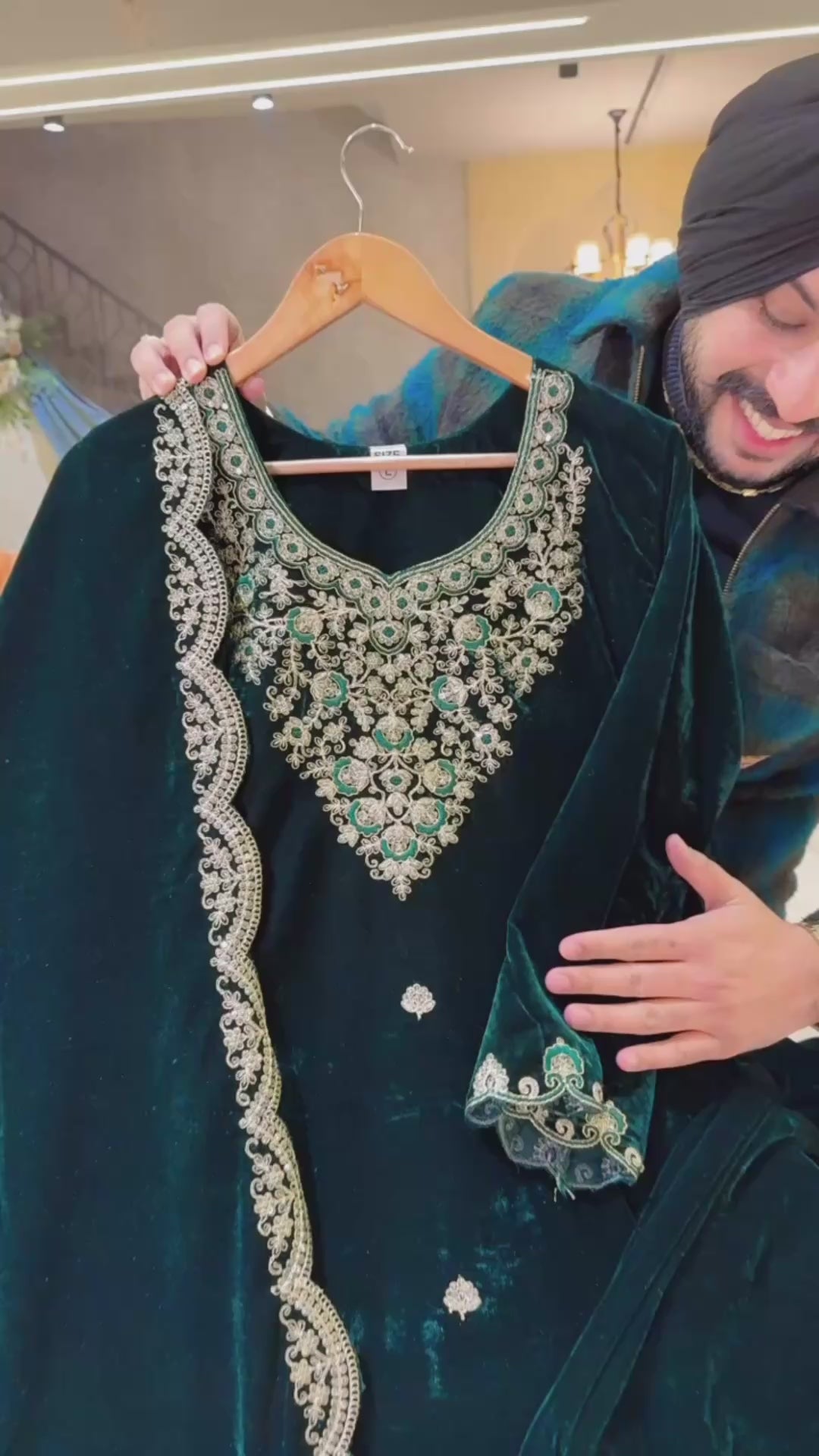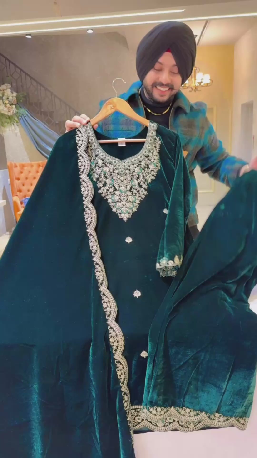 Bottle Green Premium Velvet Heavy embroidered Pakistani Plazo suit with Embroidered Duppata