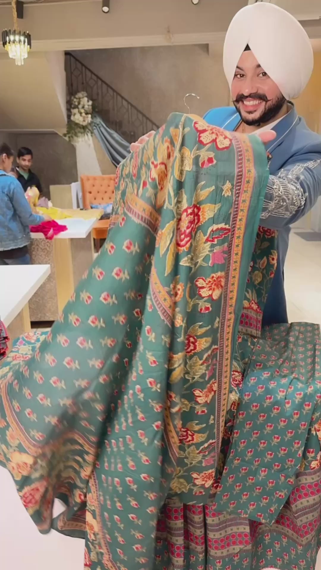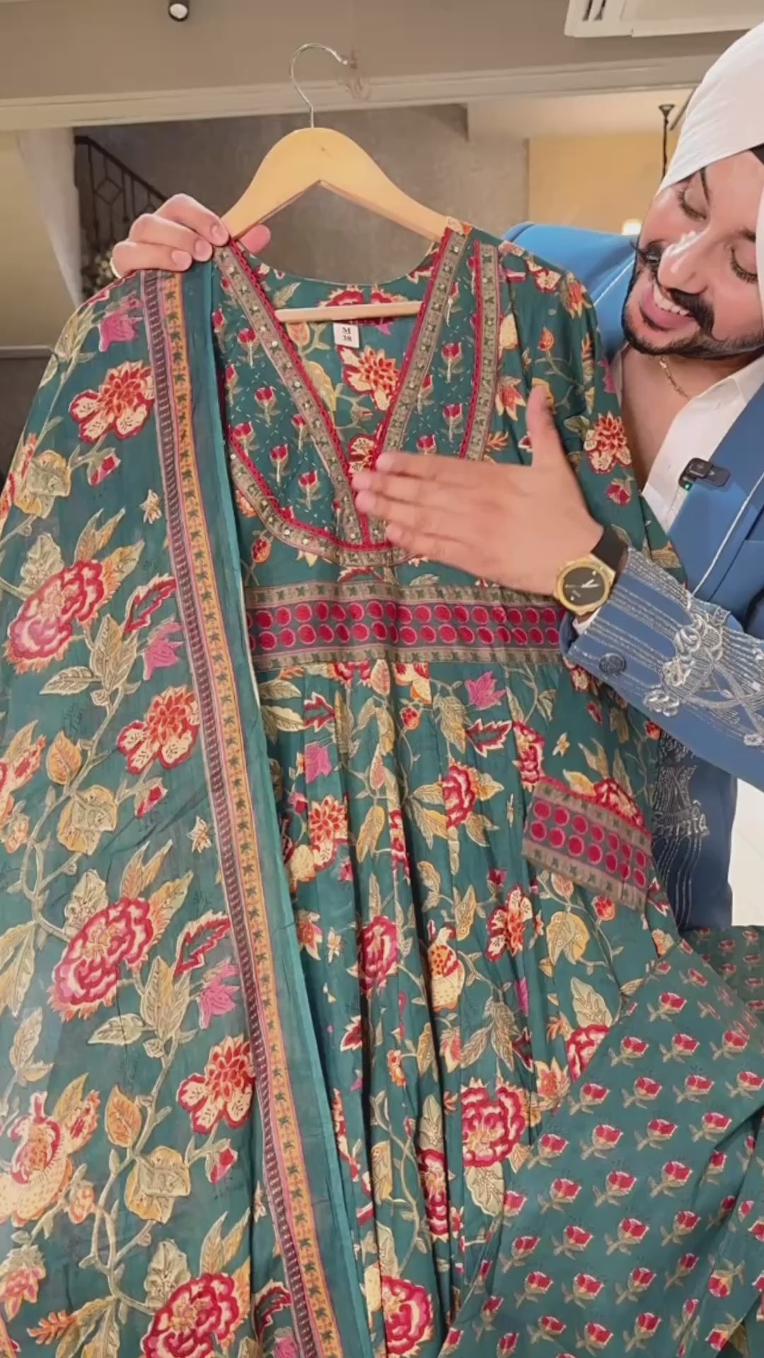 Green pure Cotton Floral print Full Fliar Anarkali Suit with Beautiful Duppata
