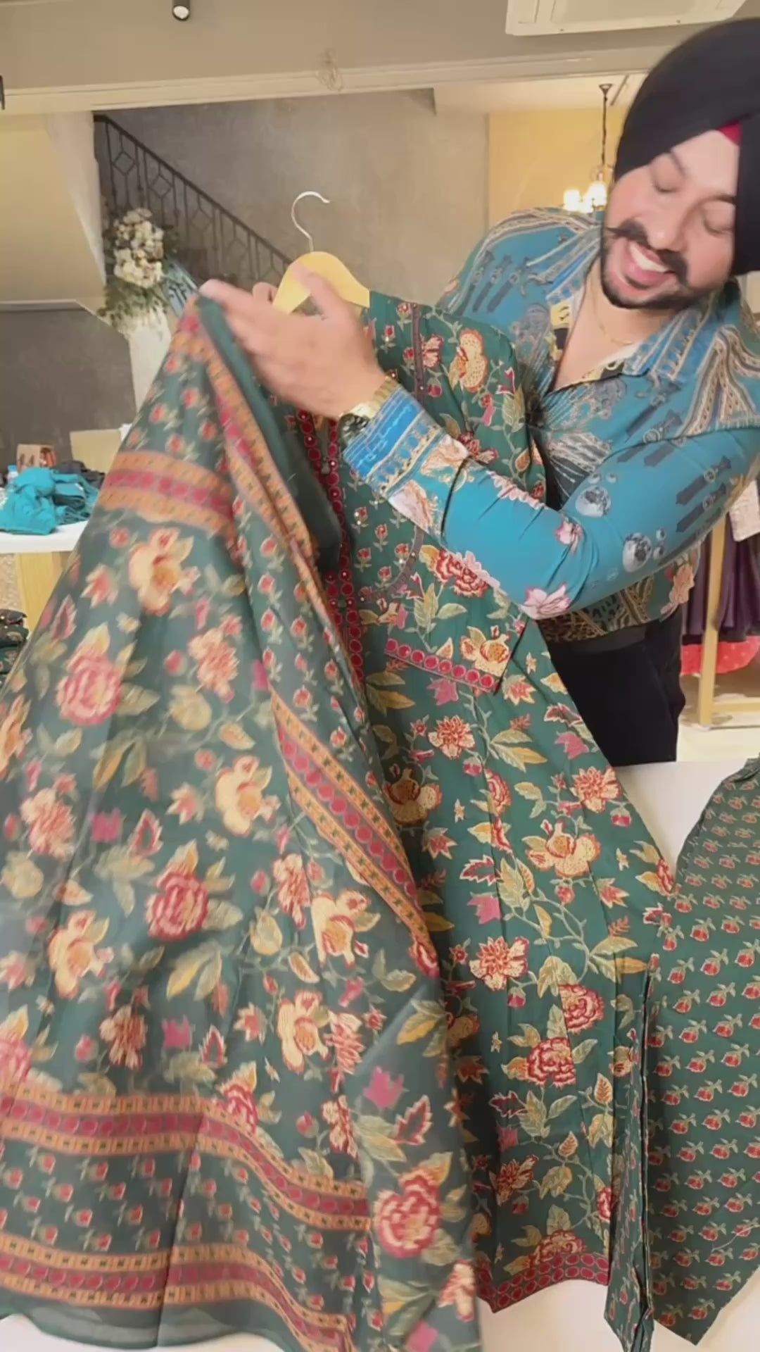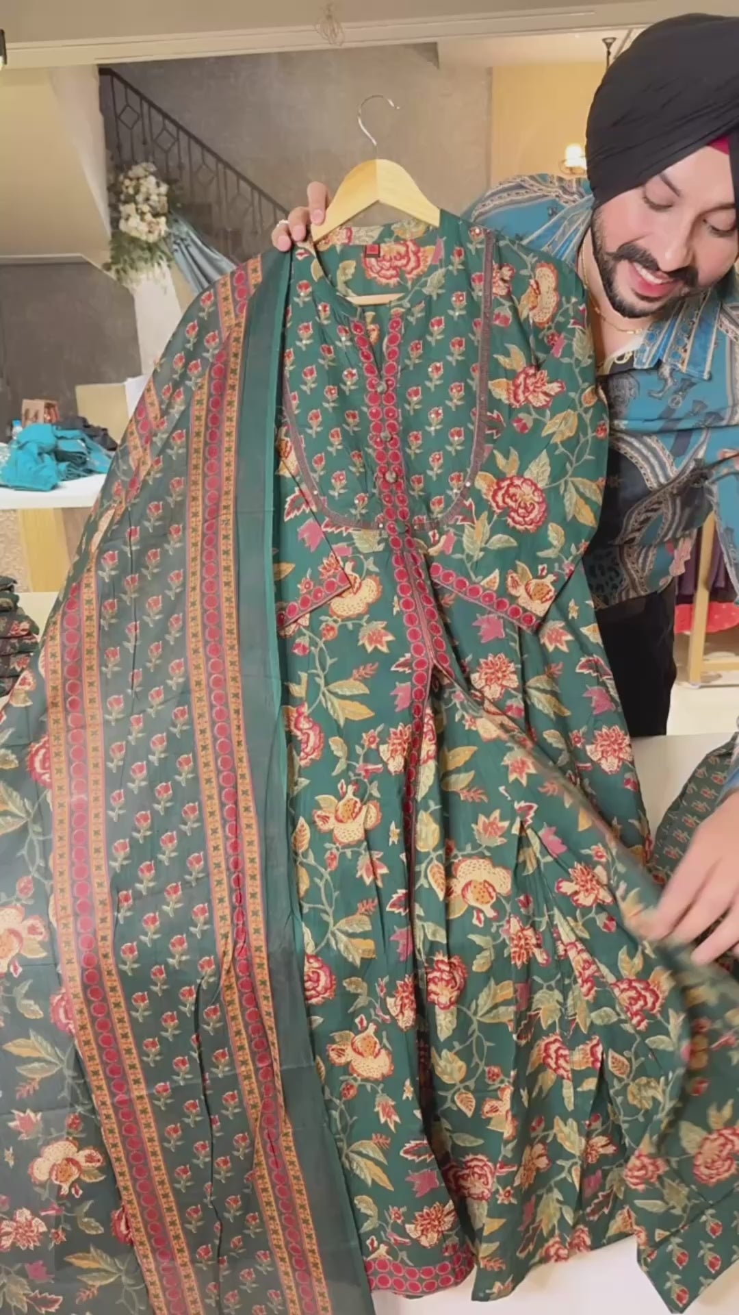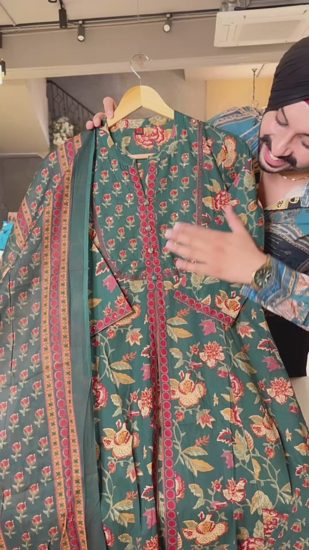 Green Pure Cotton Front Slit A-line Suit with Beautiful Duppata