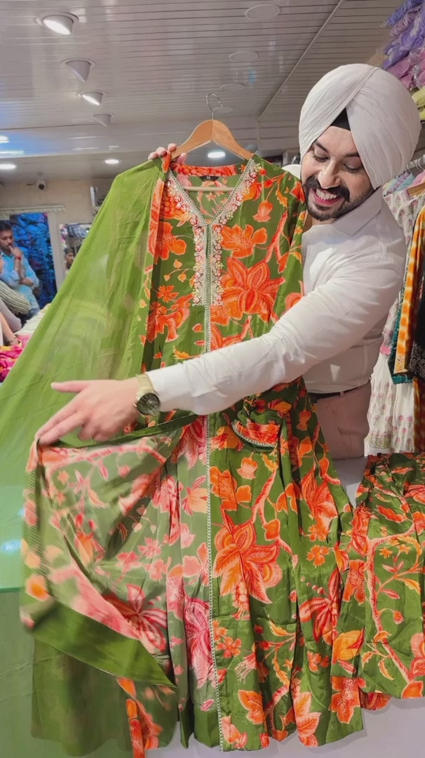 Green Pure Crepe Front slit Anarkali with Stylish Sharara
