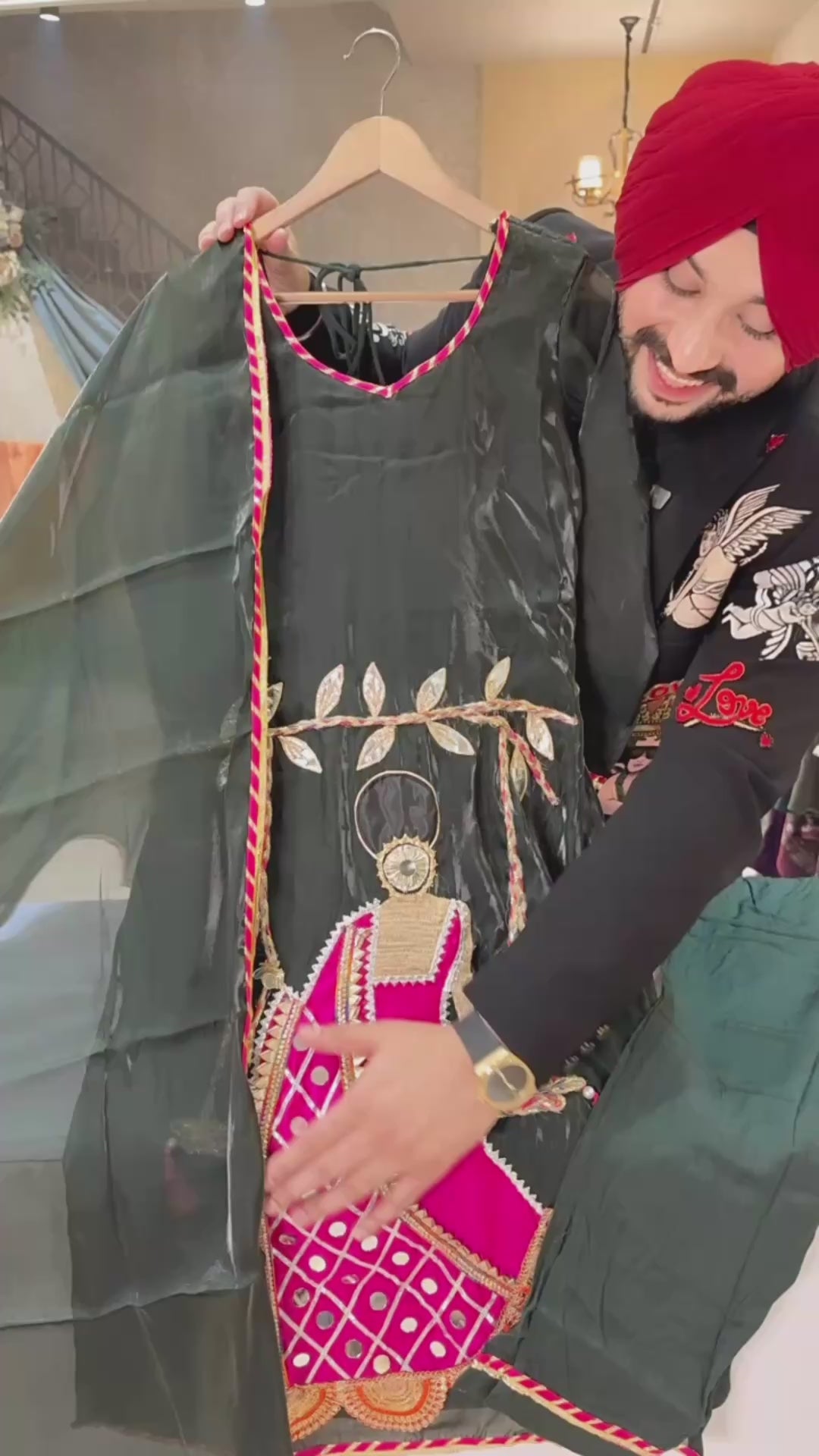 Green Shimmer Silk tissue Doll Hand embroidered straight Suit with Beautiful Duppata
