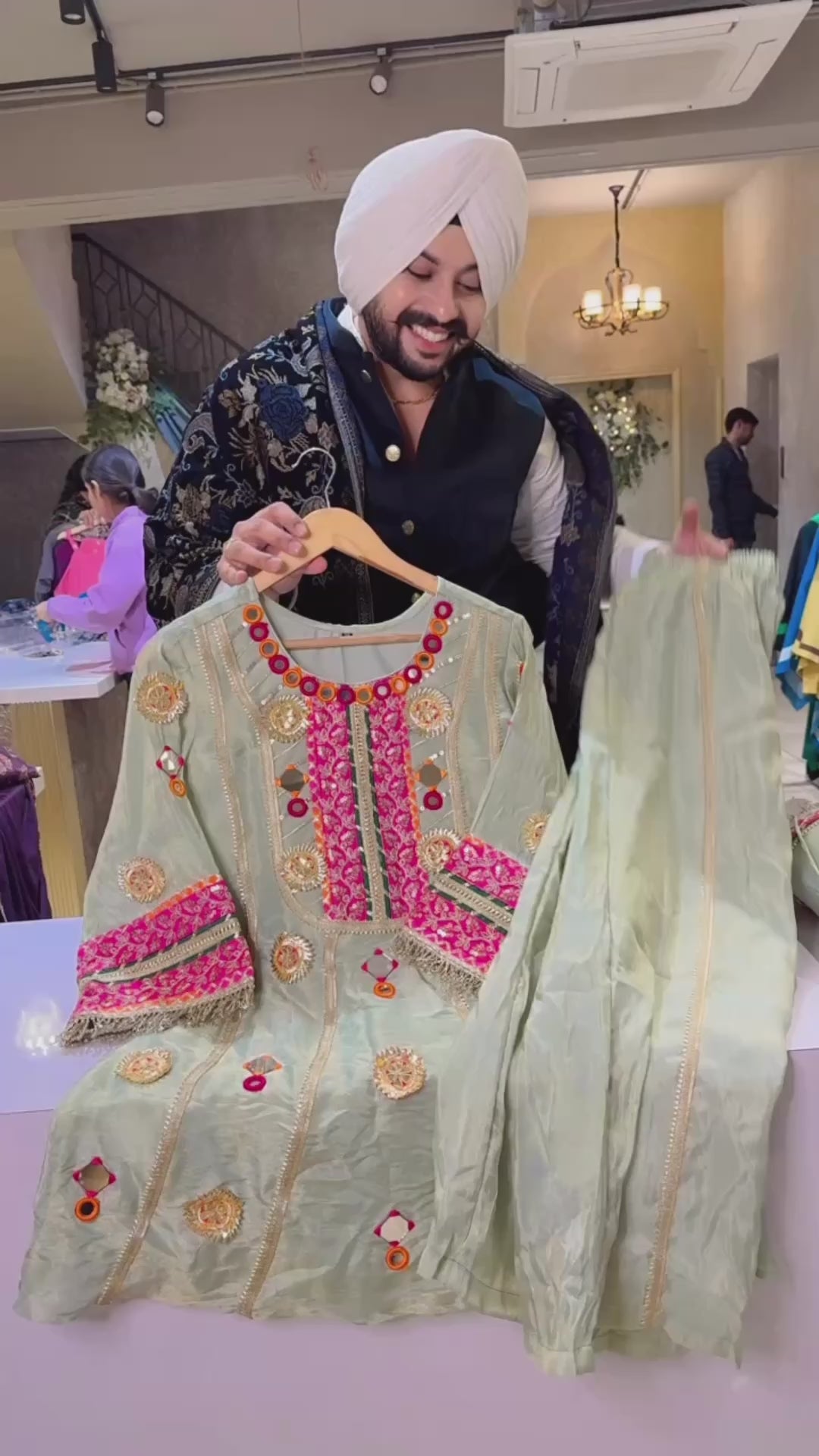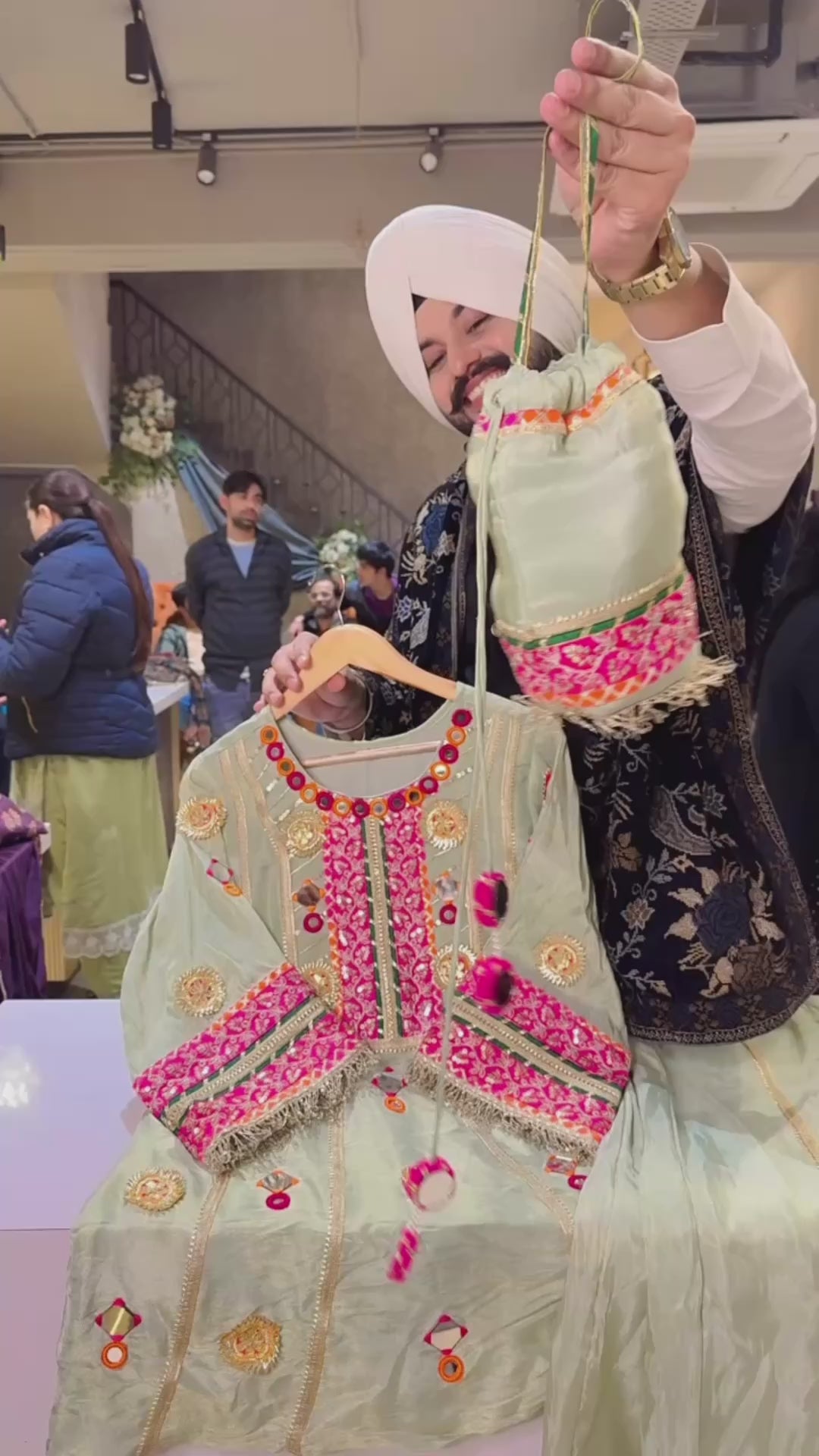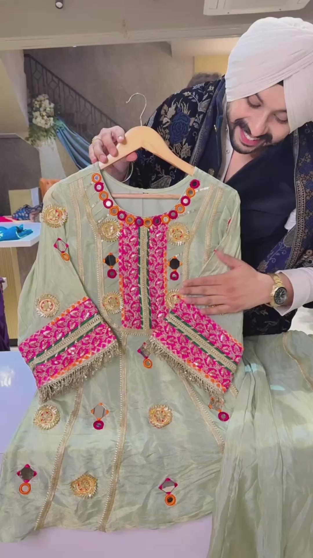 Light Seagreen Shimmer silk Tissue Gotta & mirror embroidered Paplum Coord set with Potli