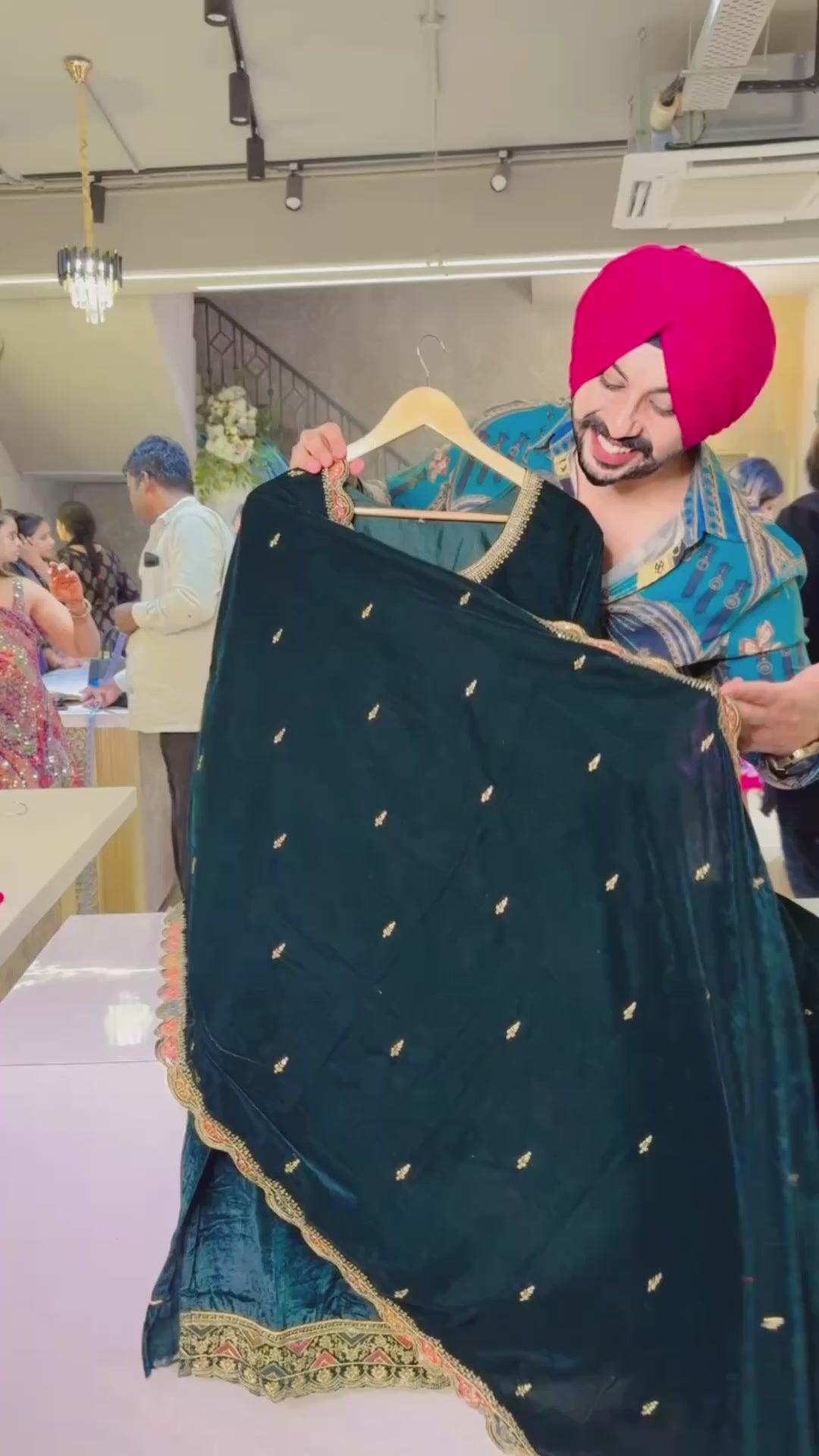 Green Velvet heavy embroidered Full Flair Sharara suit