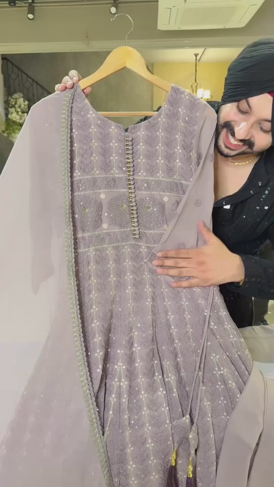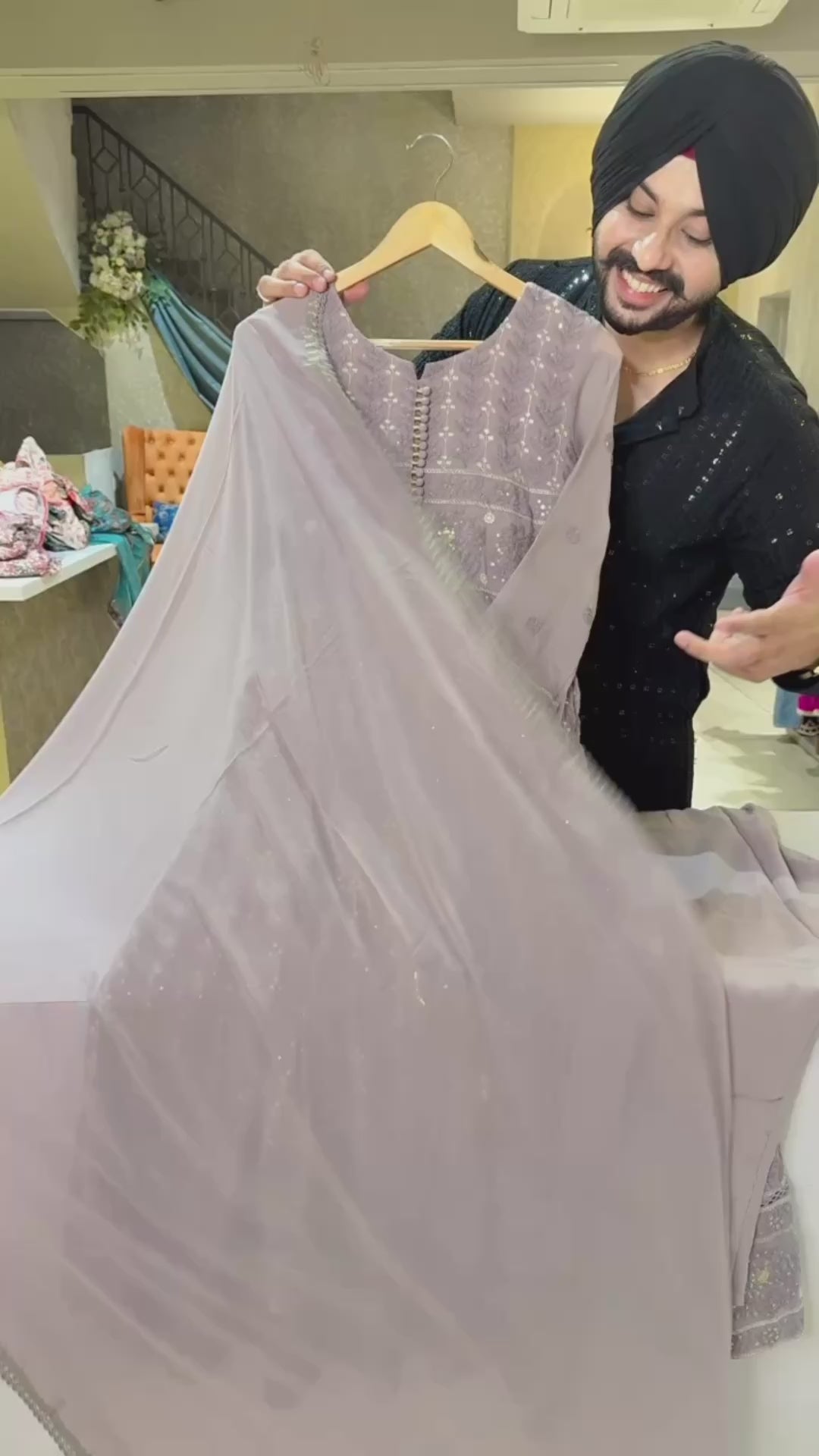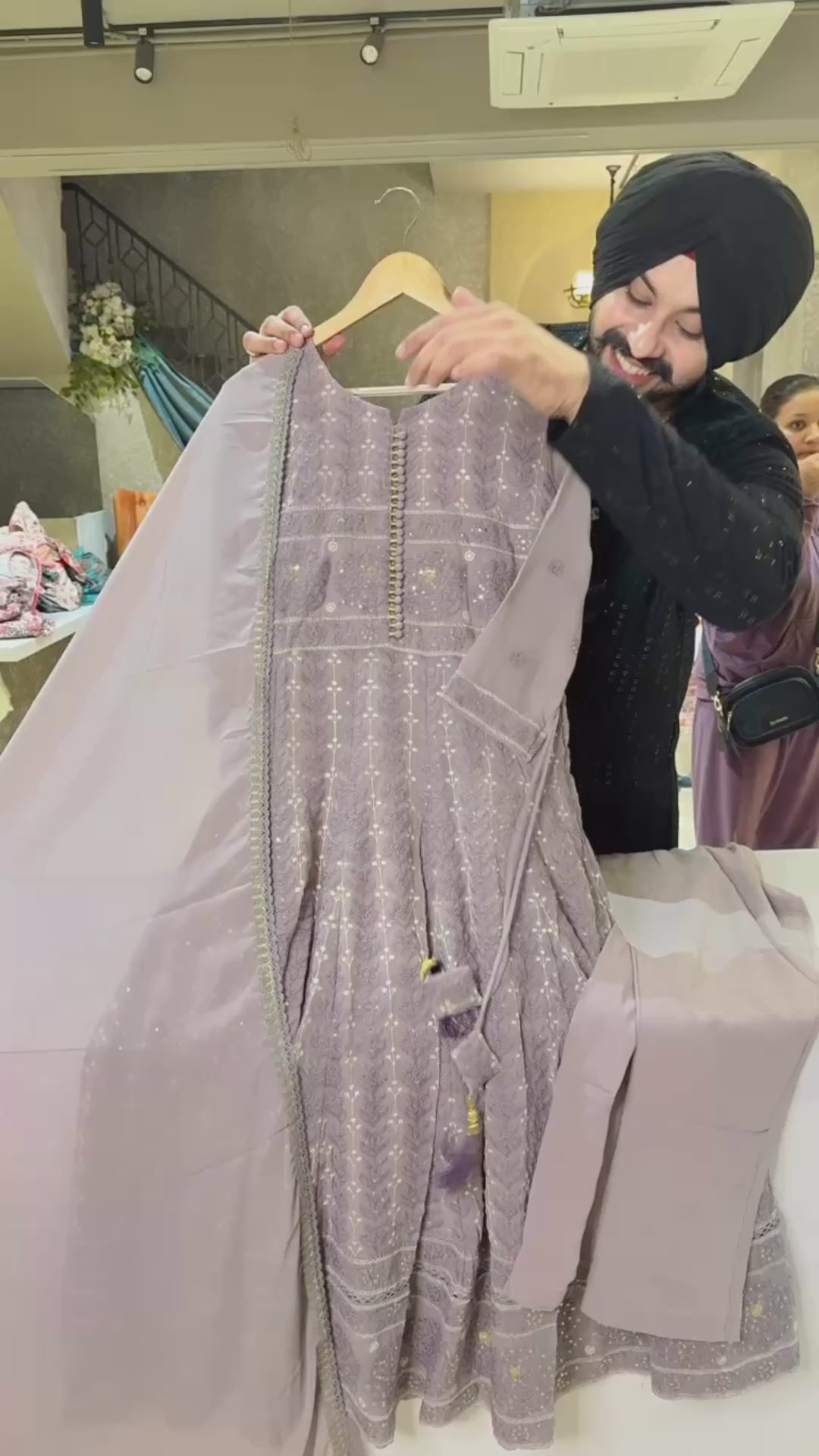 Greyish mauve Georgette Fully self Embroidered Anarkali suit