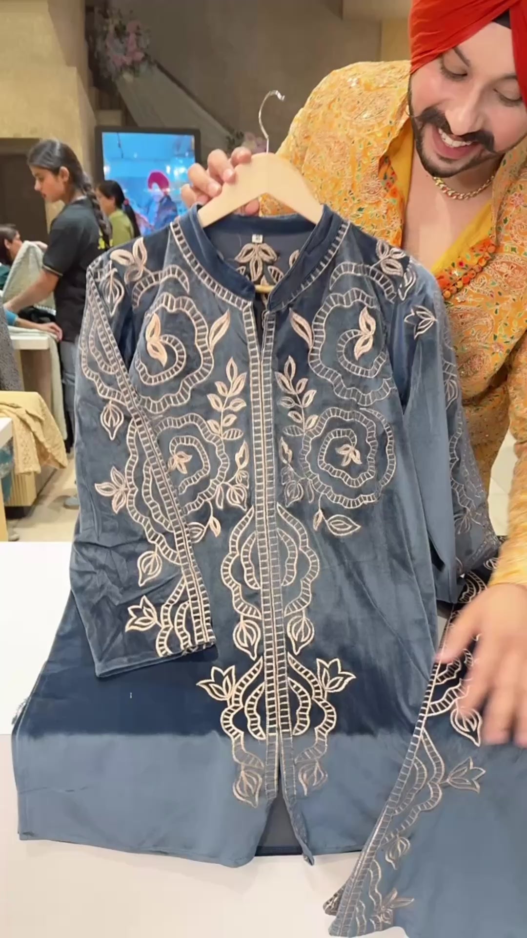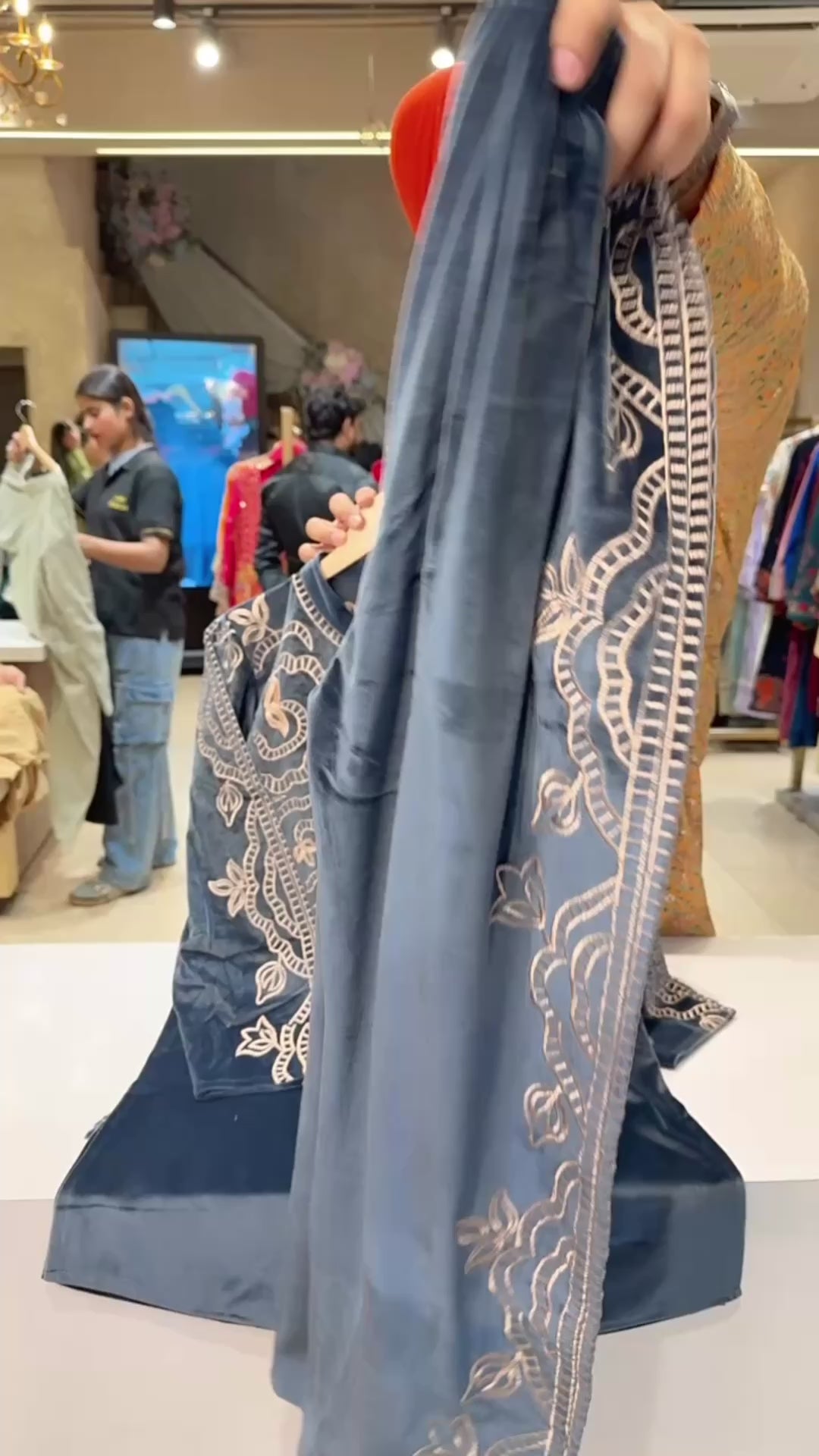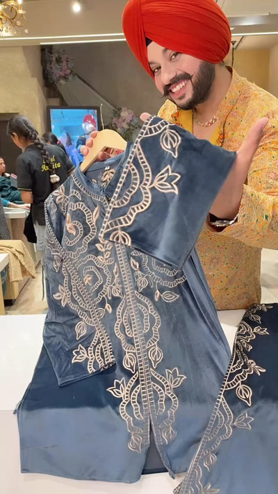Greyish Blue Matt Velvet Embroidered semiformal Coord set