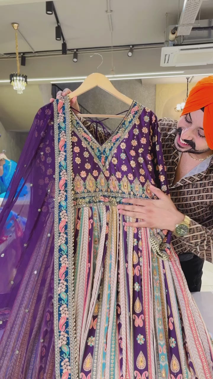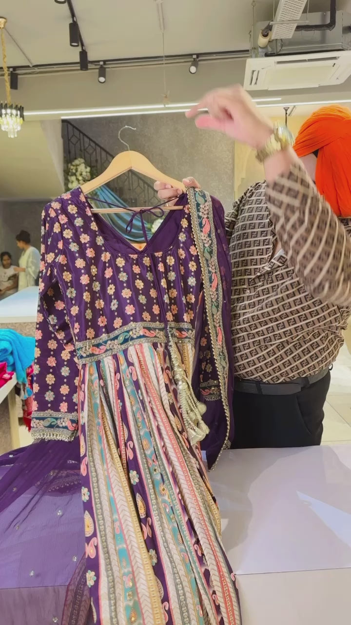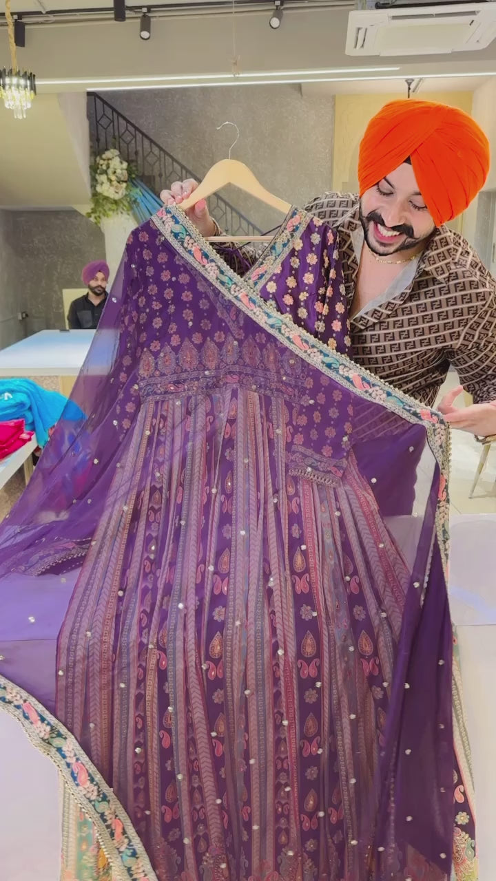Wine Crepe Heavy Alia Anarkali Gown with Beautiful Duppata