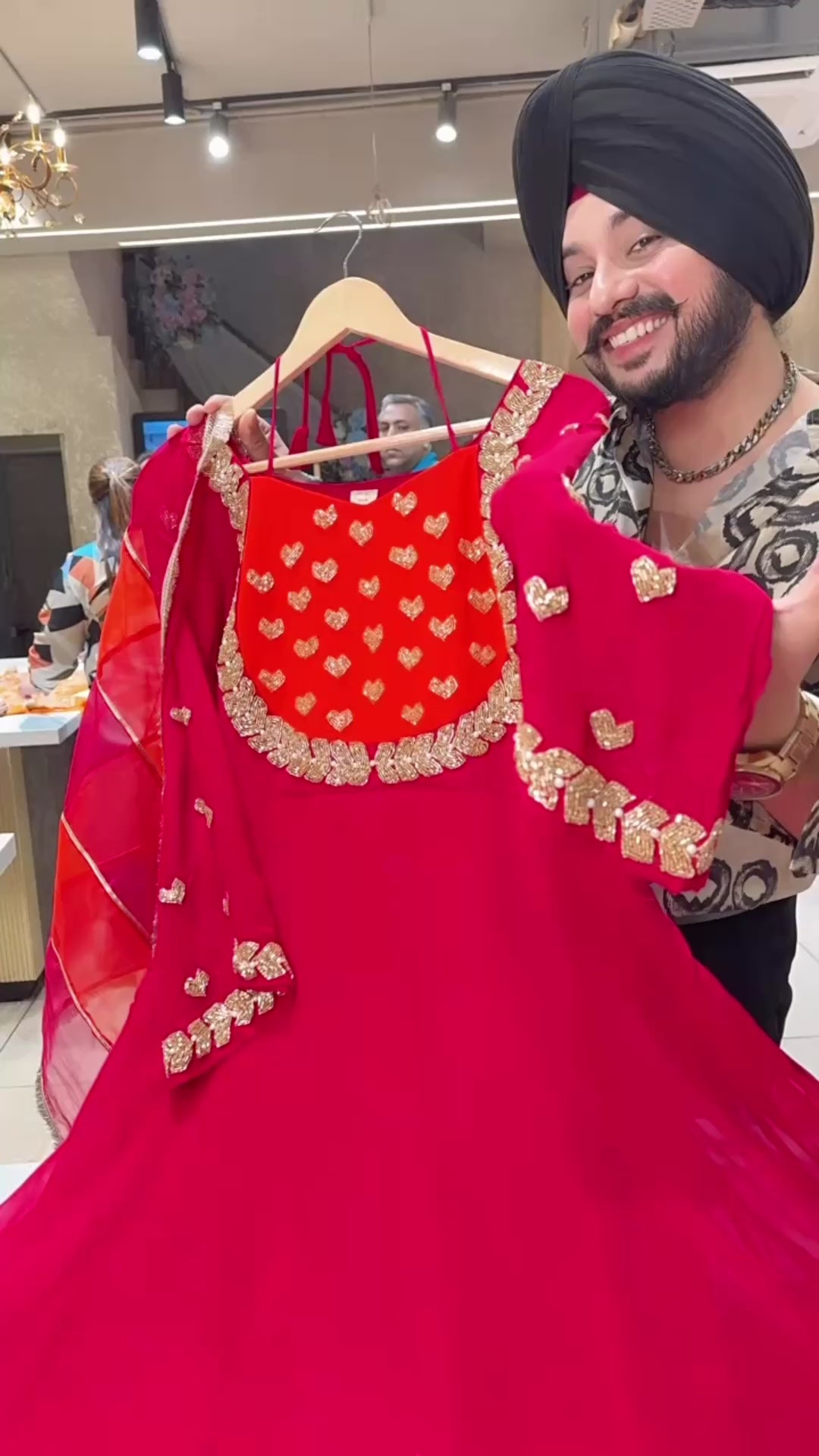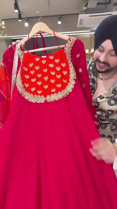 Rani Pink Georgette Hand embroidered Party wear Anarkali Gown with Beautiful Organza Duppata