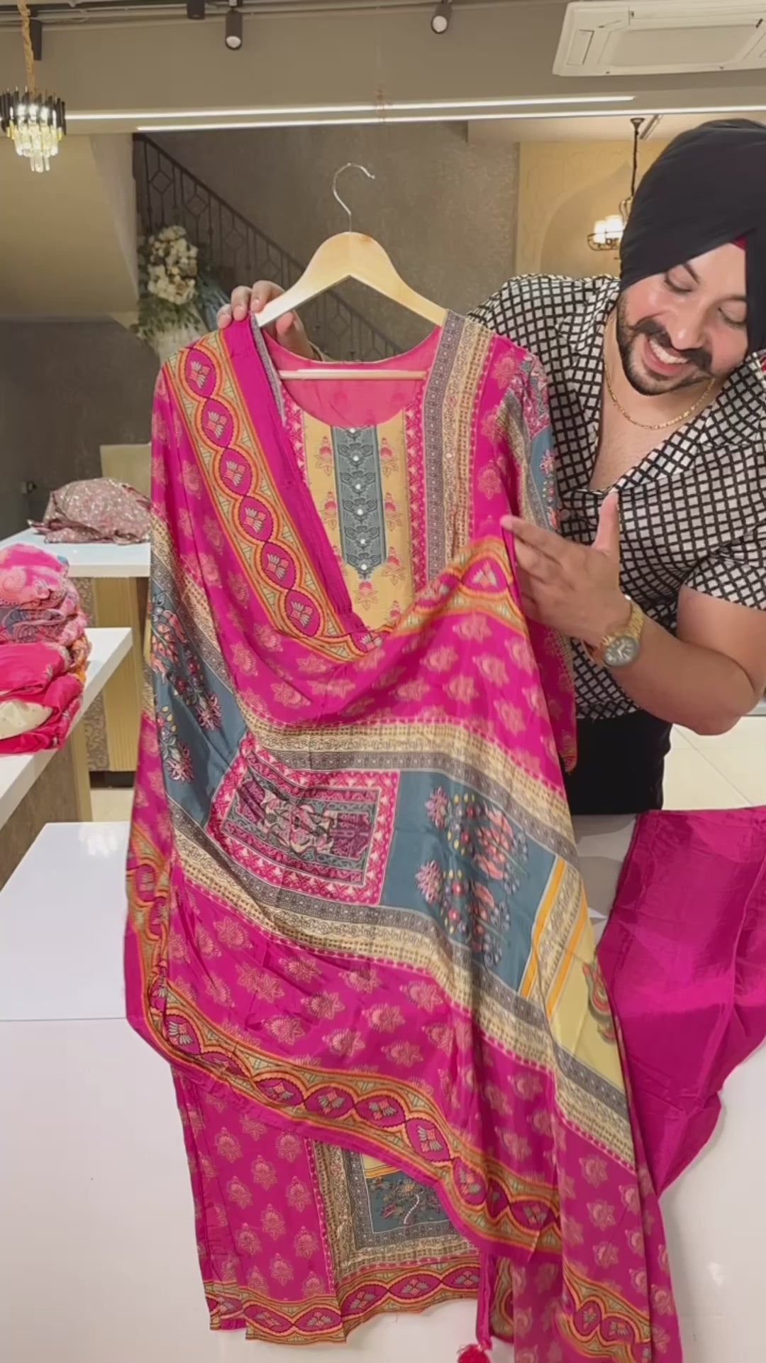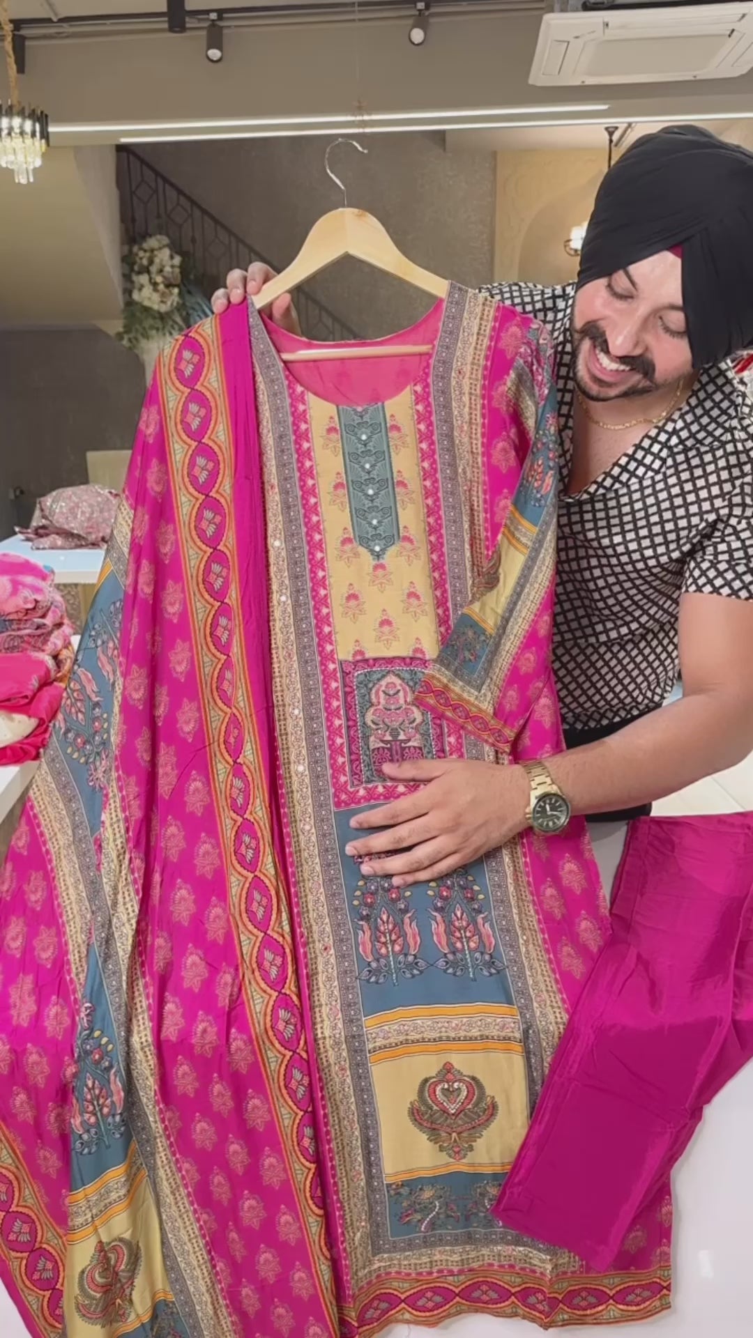 Hot pink muslin silk Digital Print suit with Beautiful Duppata