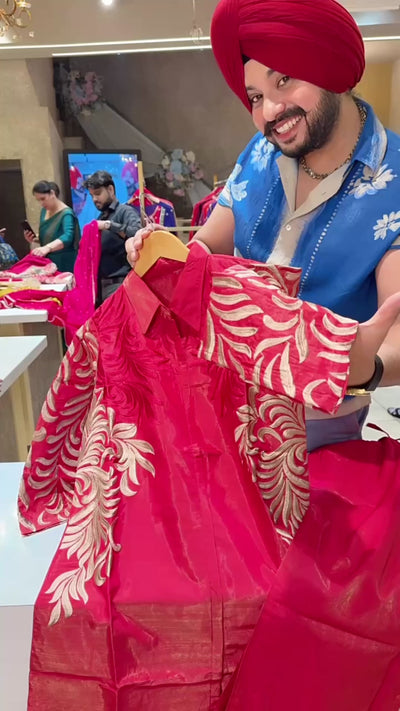 Gajri pink Glossy Shimmer silk Collar Neck Coord set with Beautiful Embroidery Work on It