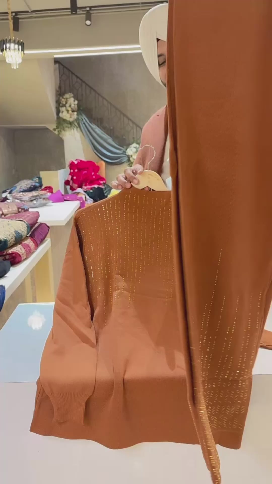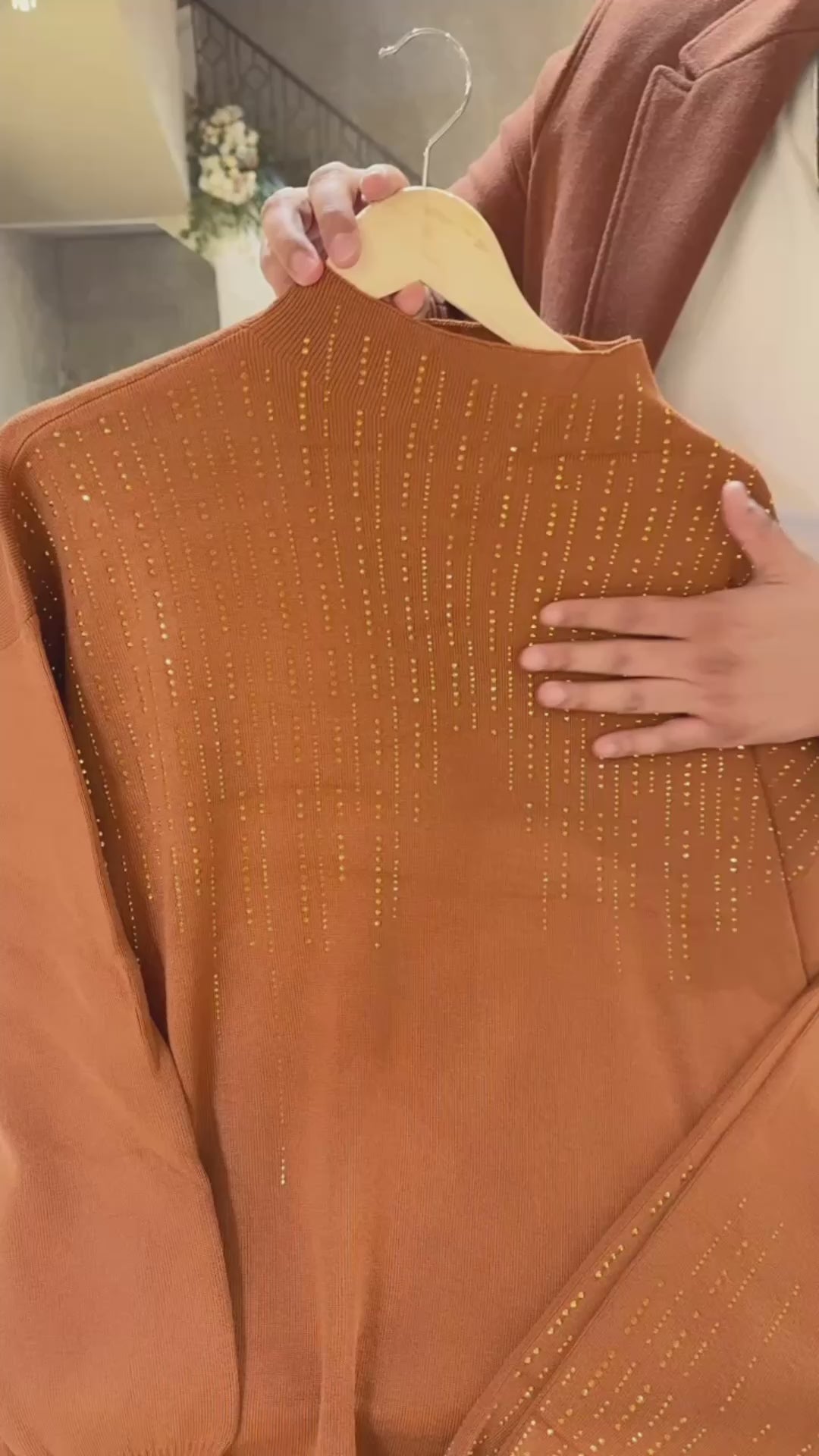 Tan Brown Imported woolen Fully Strechable swarovski work Coord set