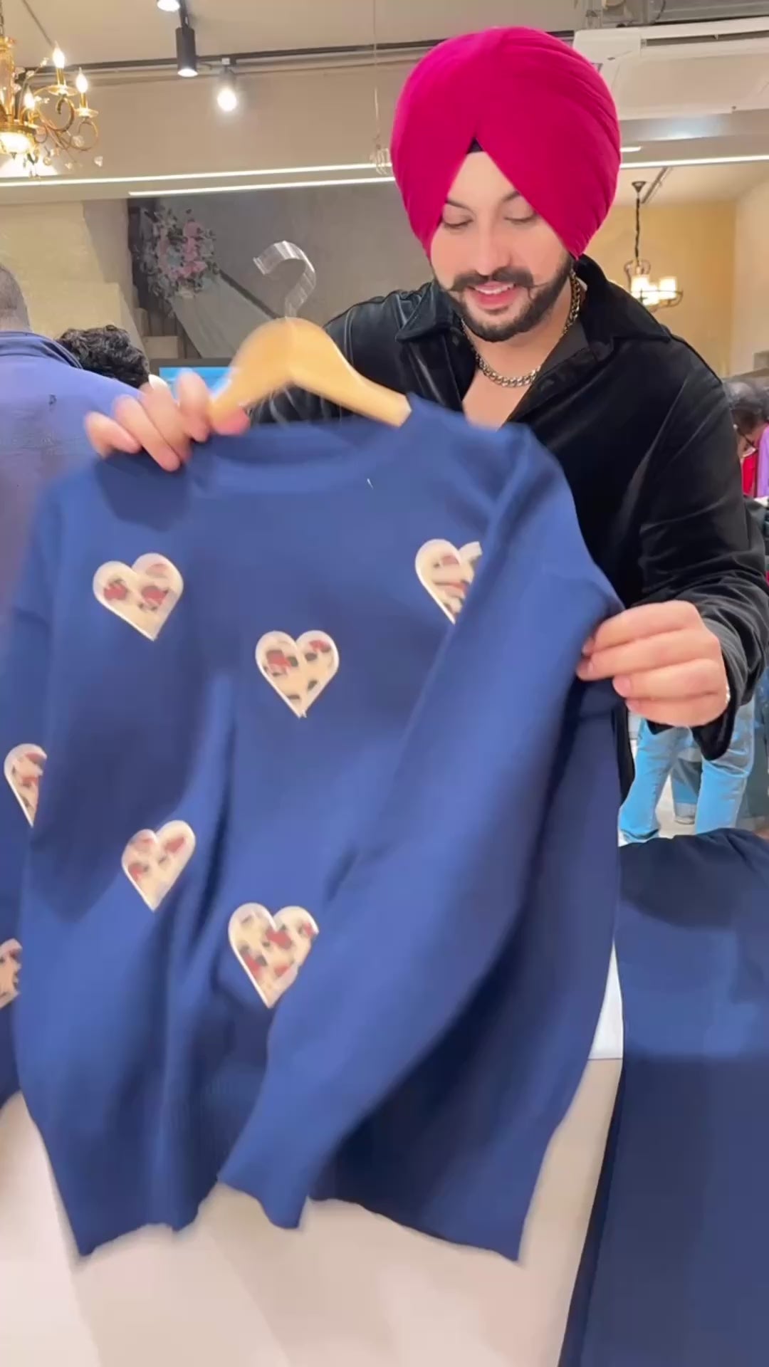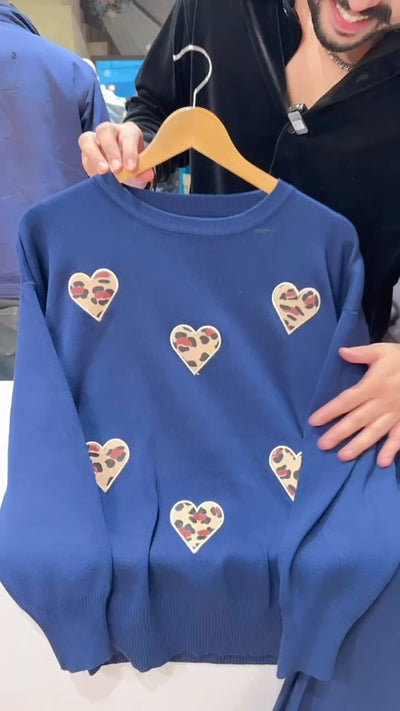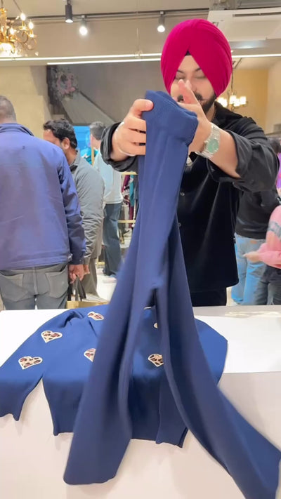 Dark Blue Imported Woolen Fully Stretchable Western Coord set with Heart Patchwork on it