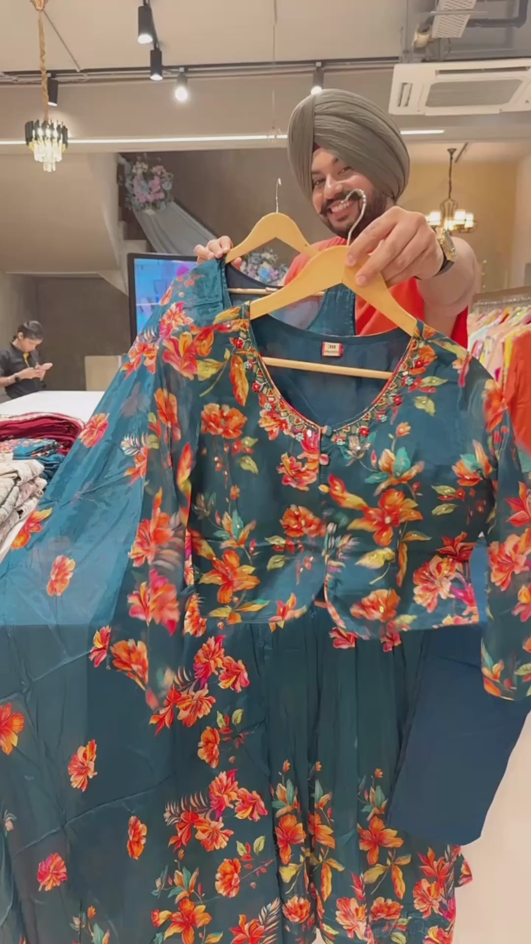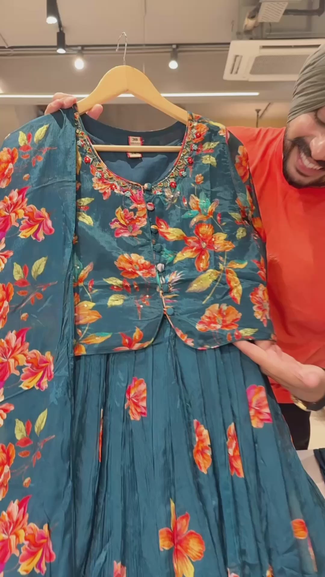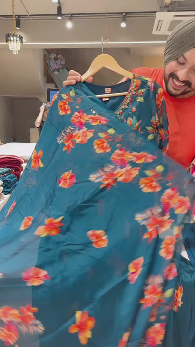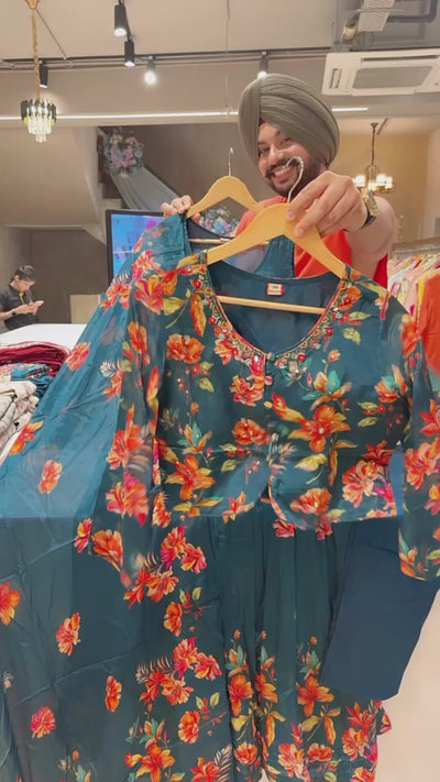 Peacock Chinon Floral Print Full Flair Anarkali Suit with Beautiful Embroidered Jacket